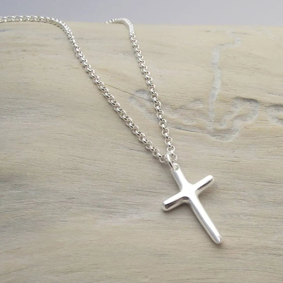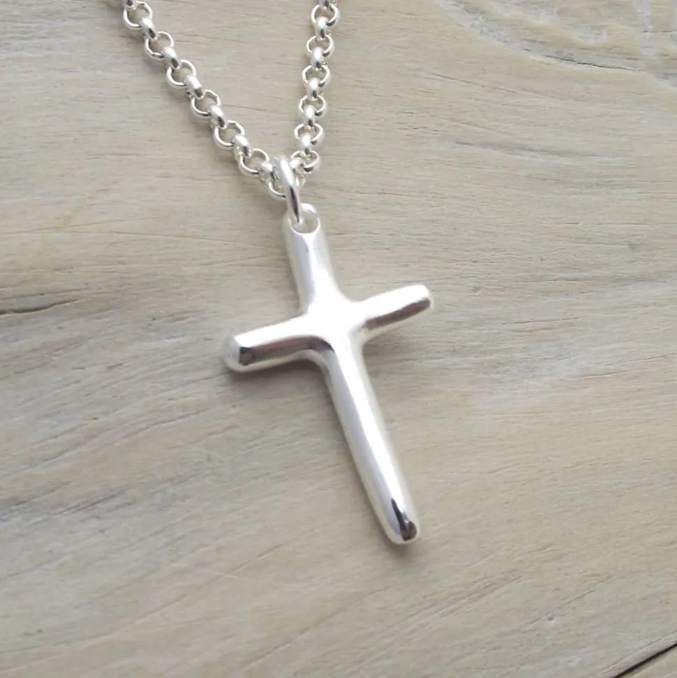 Sehr schönes und einfaches Kreuz mit oder ohne Silberkette erhältlich. Die Form ist sehr reduziert gestaltet, durchweg rund und weich gearbeitet, ohne Kanten oder Ecken und lässt sich sehr bequem tragen. Passend dazu können Sie eine schöne, fließend anliegende Silberkette erwerben.
