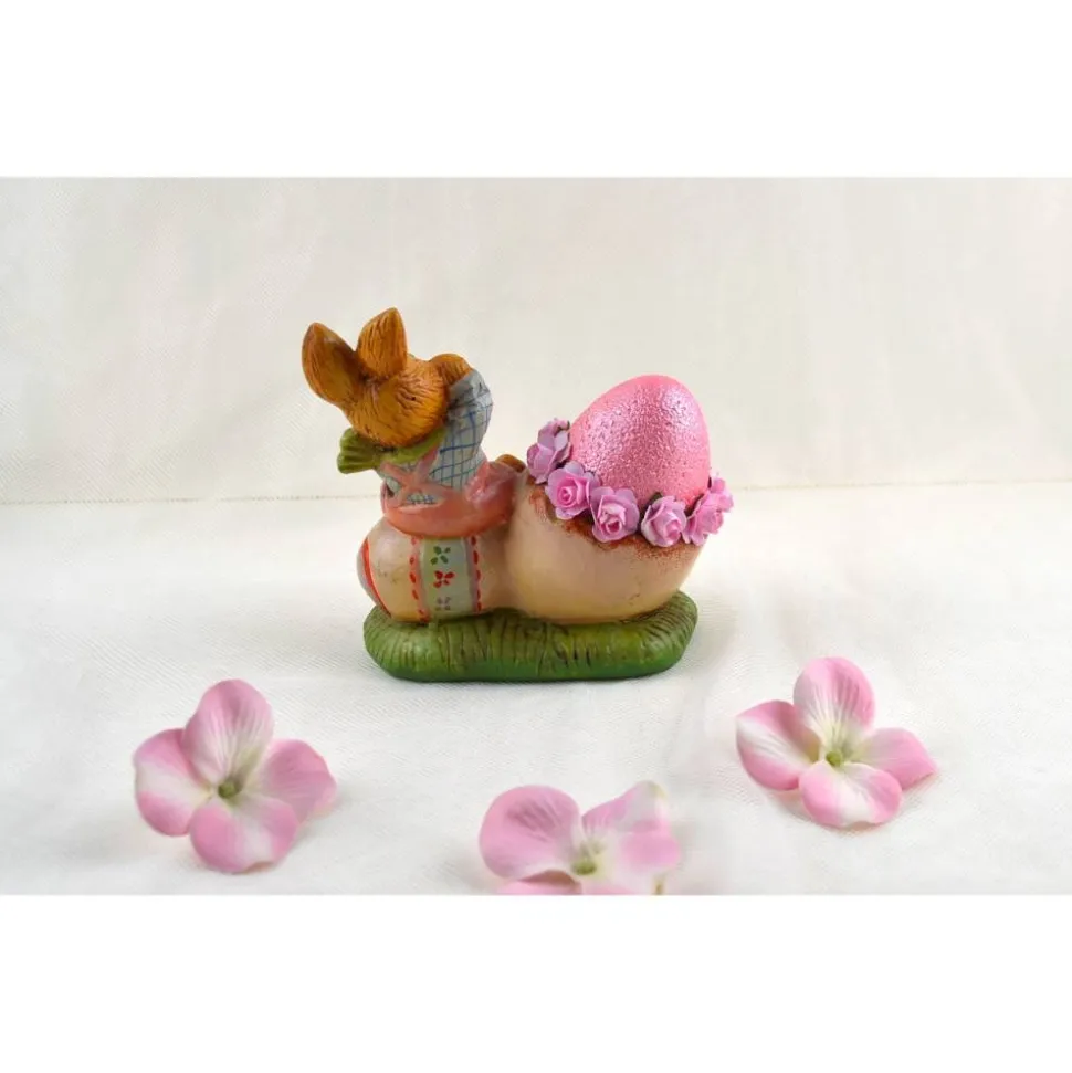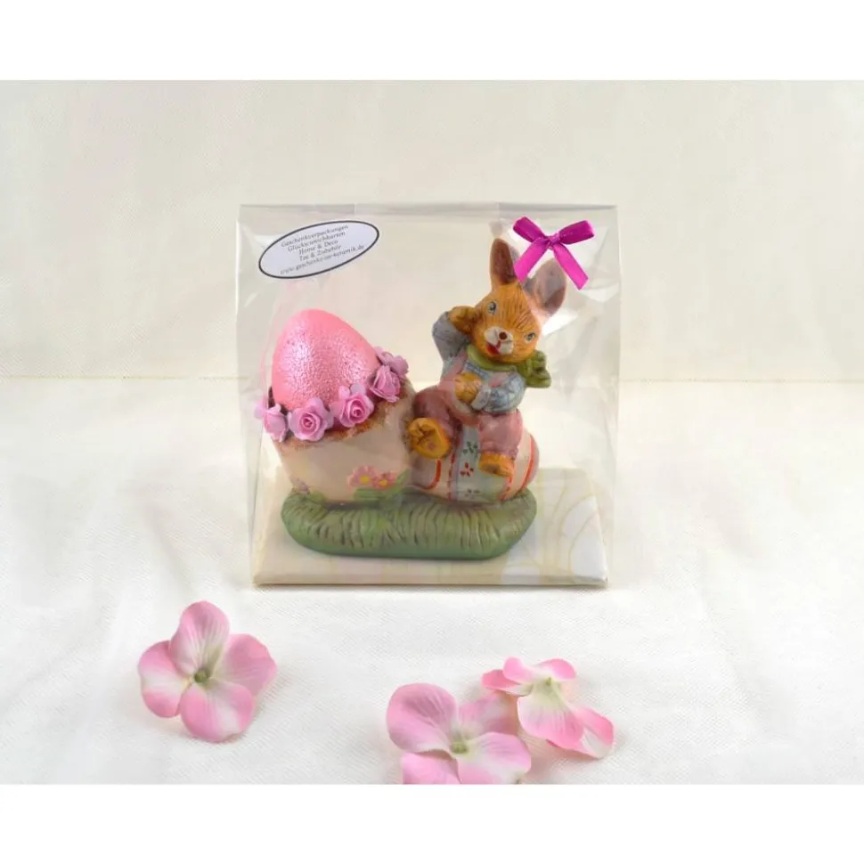Dieses entzückende Häschen aus Keramik sitzt fröhlich auf einem bunt bemalten Osterei. Das rosa Ei ist aus Styropor und ist mit kleinen rosa Papierblumen verziert. Das wunderschöne Vintage-Design begeistert mit seinen bunten Farben. Diese Osterdekoration passt sehr gut auf den Kaffeetisch oder auf die Fensterbank. Sie sorgt für die richtige Osterstimmung. Das Häschen ist im Folienbeutel verpackt und mit einer kleinen Schleife verziert. Somit ist sie auch ein schönes Geschenk für Familie oder z. B. eine nette Nachbarin.
