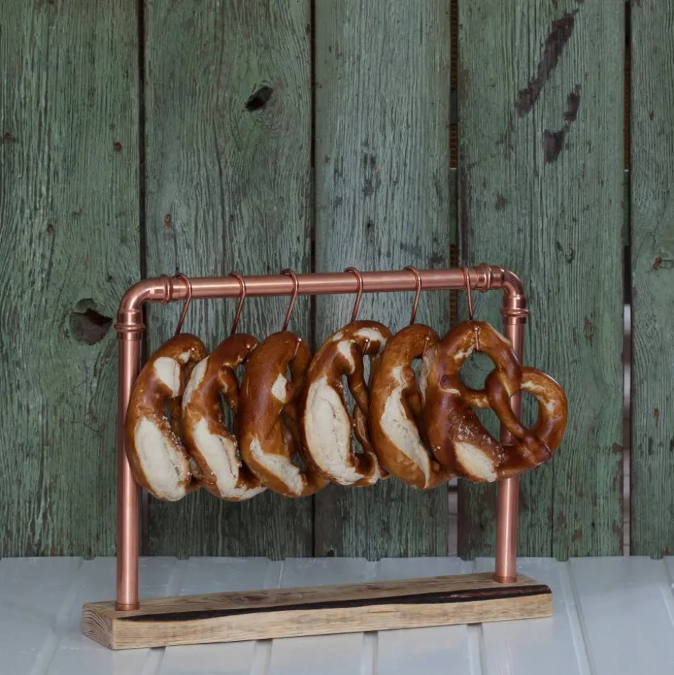 Unser rustikaler GNOSJÖ – Snackständer aus Kupferrohr auf einem Holzsockel wird das absolute Highlight auf deiner Hochzeitsfeier. Der Aufsteller bietet Platz für bis zu sechs leckere Brezeln, knackige Würstchen oder andere Snacks. Der GNOSJÖ – Snackständer sieht nicht nur auf der Hochzeit total angesagt aus, er eignet sich auch hervorragend für die nächste Gartenfeier, das Wirtshaus oder den Biergarten.