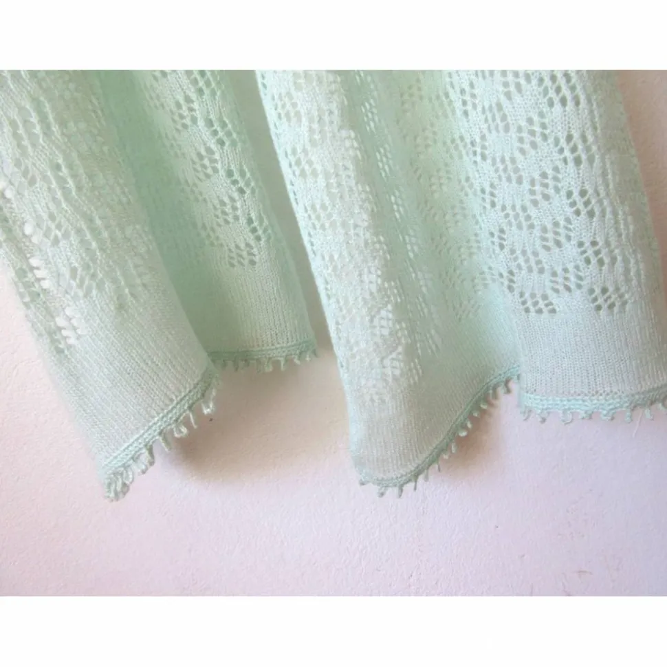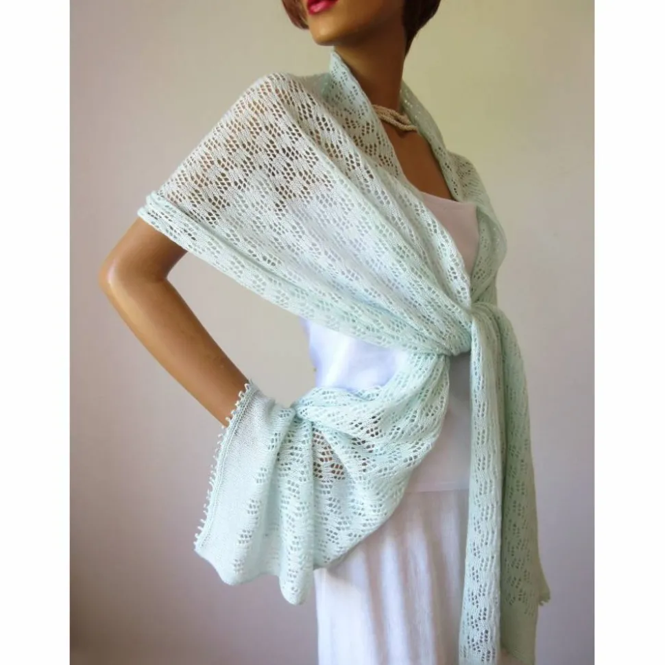 Dünnes gestricktes Tuch in hellem Mint – ein leichter zarter Schal aus reiner Naturfaser.