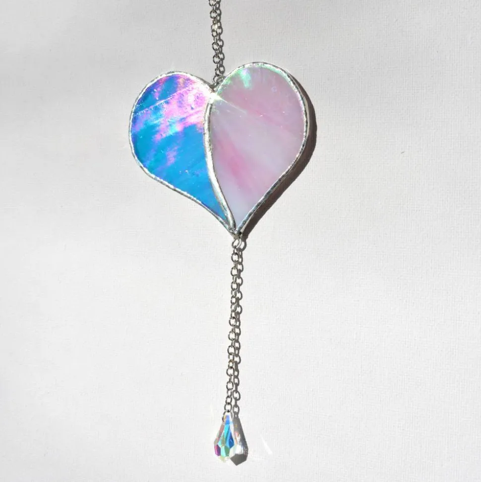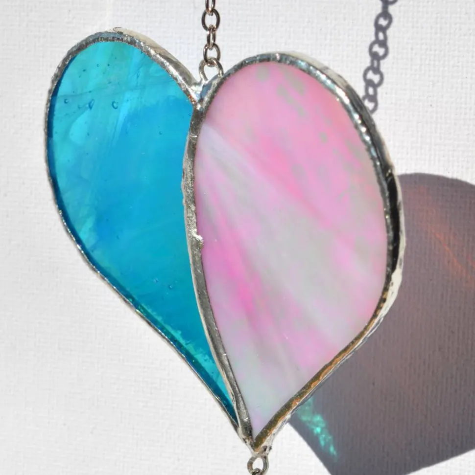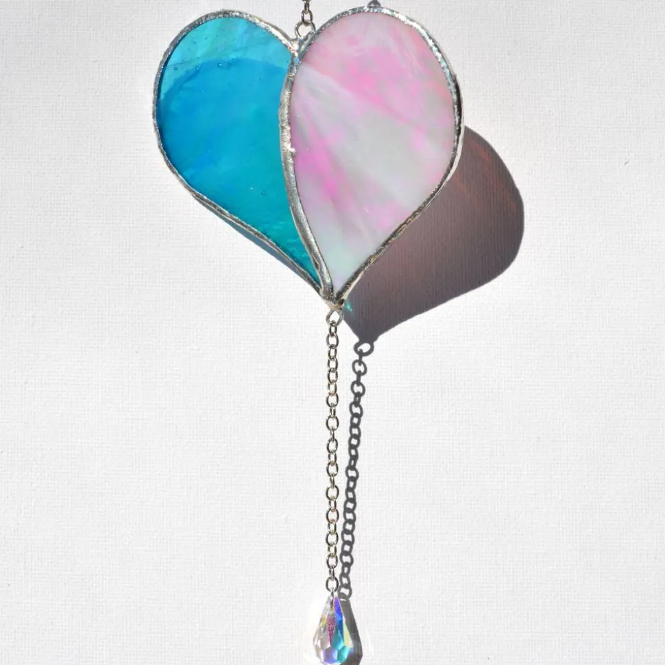 Das Herz steht für Liebe, Freundschaft und Geborgenheit. Durch die Kombination der Farben Türkis und Rosa entsteht ein wunderschönes Gleichgewicht zwischen Ruhe und Wärme. Dieser Sonnenfänger erinnert an besondere Menschen und strahlt positive Energie aus.