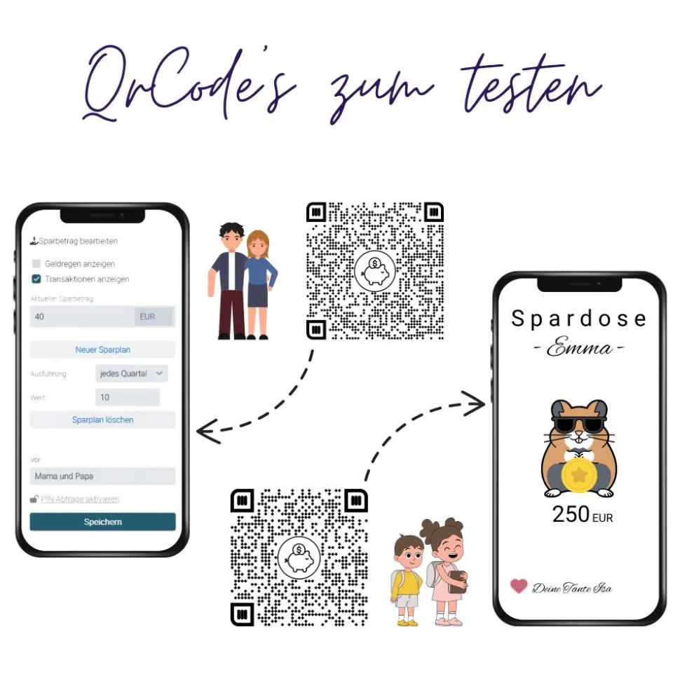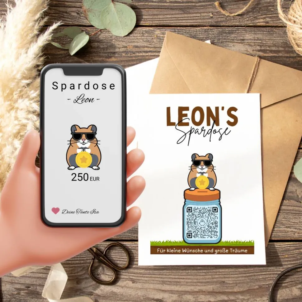 Sparbuch mit QR-Code – personalisierte Geschenkidee zur Taufe, Geburt oder Einschulung | Handmade | Hamster