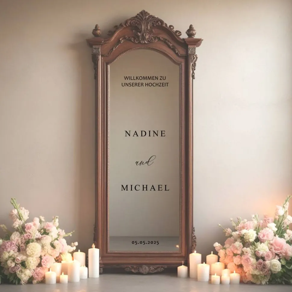 Auf Wunsch können wir „Willkommen zu unserer Hochzeit“ auch auf einer anderen Sprache (bspw. Englisch oder Türkisch) vorbereiten.