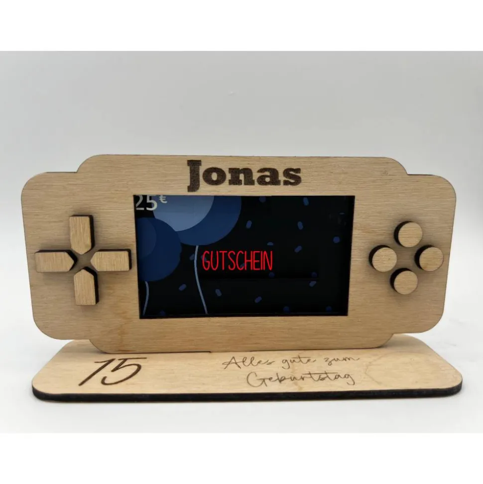 Du suchst eine kreative Geschenkidee zum Geburtstag? Mit dem individuellen Aufsteller aus Holz kannst du Gutscheinkarten oder Geld stilvoll und persönlich verschenken. Einfach den Gutschein oder das Geld in die vorgesehene Halterung stecken und schon hast du eine ausgefallene Gutscheinverpackung, die jedes Geburtstagskind begeistert.