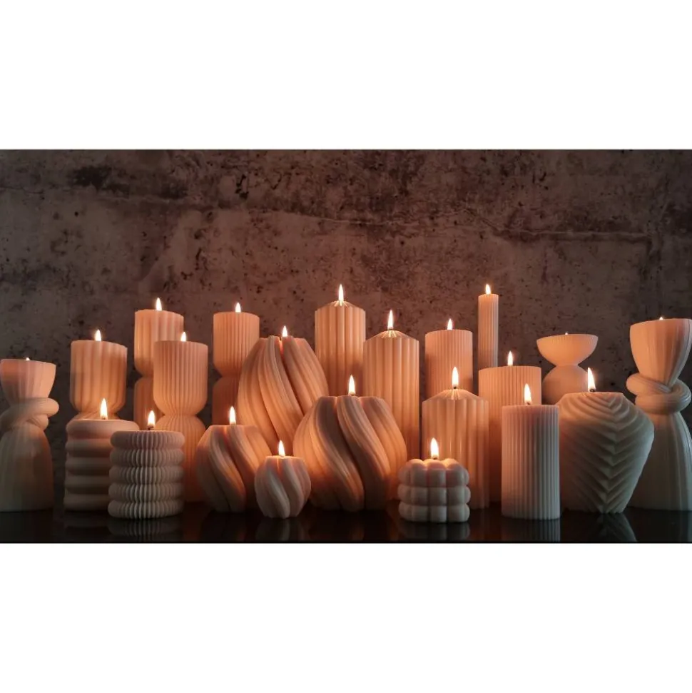 Bei besonders geformten Kerzen (z. B. Skulpturkerzen) kann das Wachs ungleichmäßig verlaufen – bitte stelle sicher, dass die Kerze auf einer geeigneten Unterlage steht, die überschüssiges Wachs auffängt.