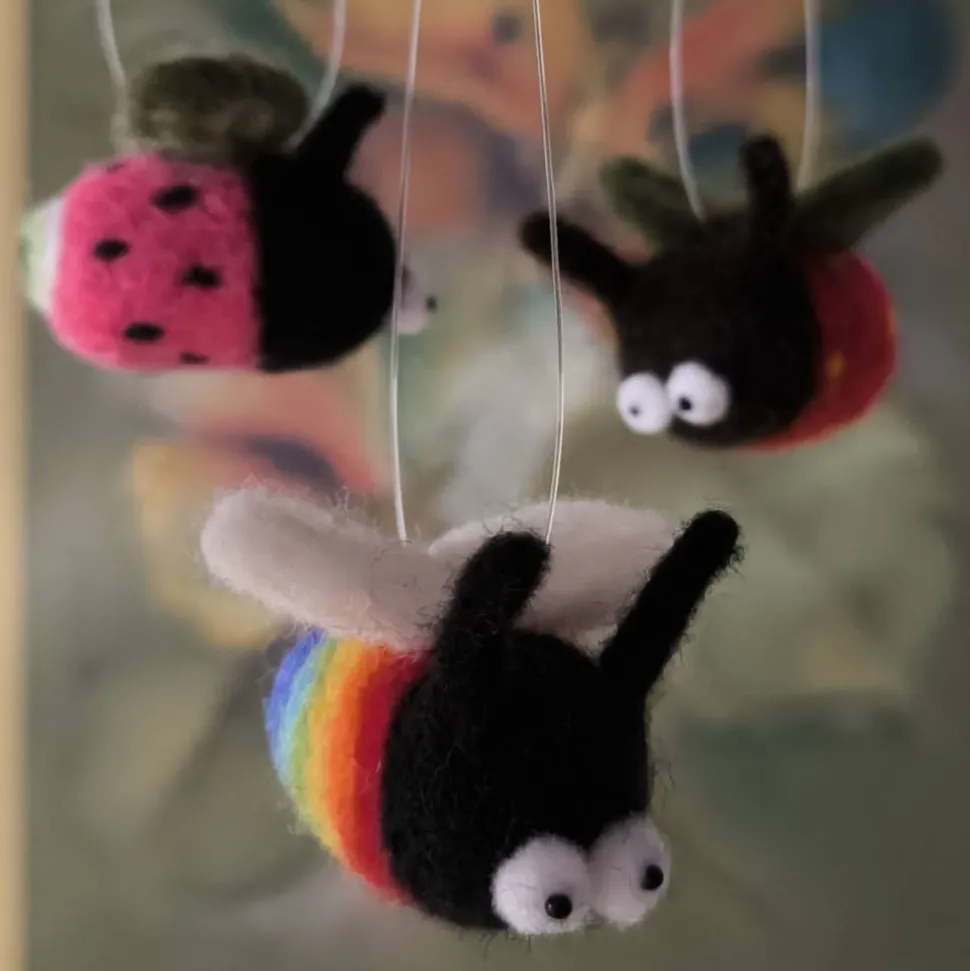 Dieses kleine zauberhafte Wesen wird von mir aus hochwertigem Neuseeland – Wollvlies in Nadelfilztechnik gefertigt und schwebt sanft an einem ca. 20 cm langen transparenten Nylonfaden. Die Augen bestehen aus Pompons und kleinen schwarzen Glasaugen. Möchtest du eine kürzere oder längere Aufhängung, schreib mir bitte eine Nachricht.