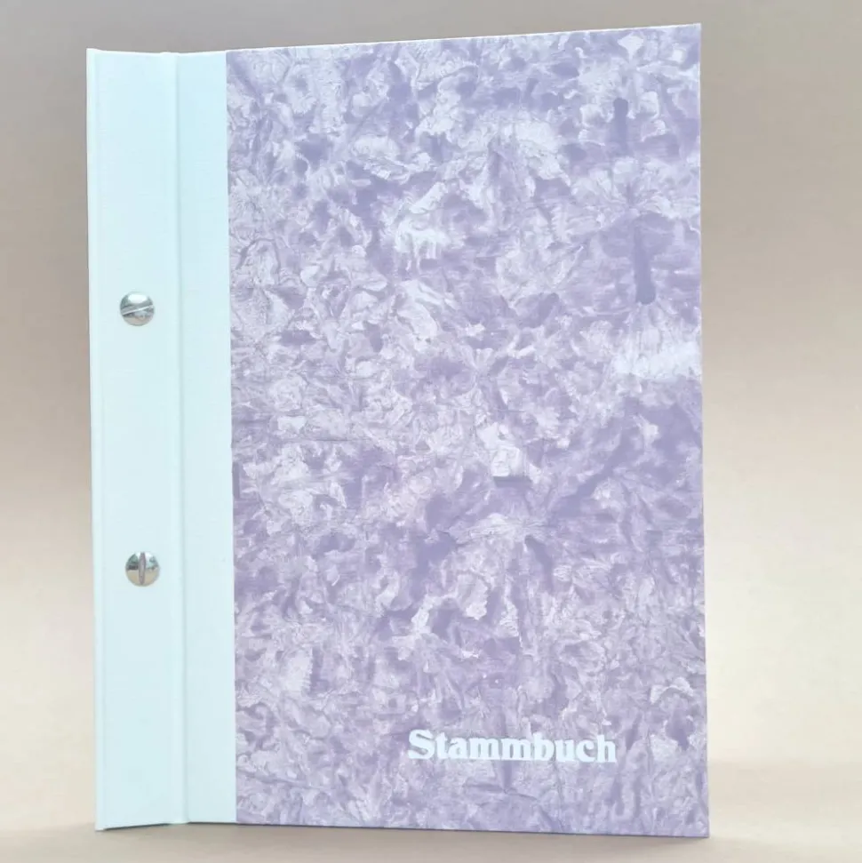 Der Schriftzug Stammbuch ist mit weißer Prägefolie im Heißprägeverfahren geprägt.