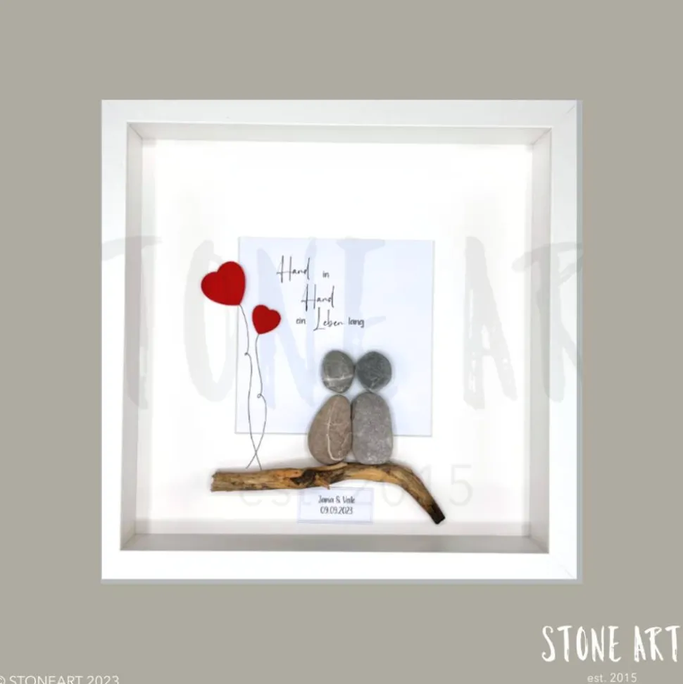 Du suchst nach einem individuellen Geschenk für das Brautpaar? Das Steinbild „Hand in Hand“ ist mehr als nur Dekoration – es erinnert täglich an den Beginn eines gemeinsamen Lebenswegs und bereichert das neue Zuhause mit persönlicher Note.