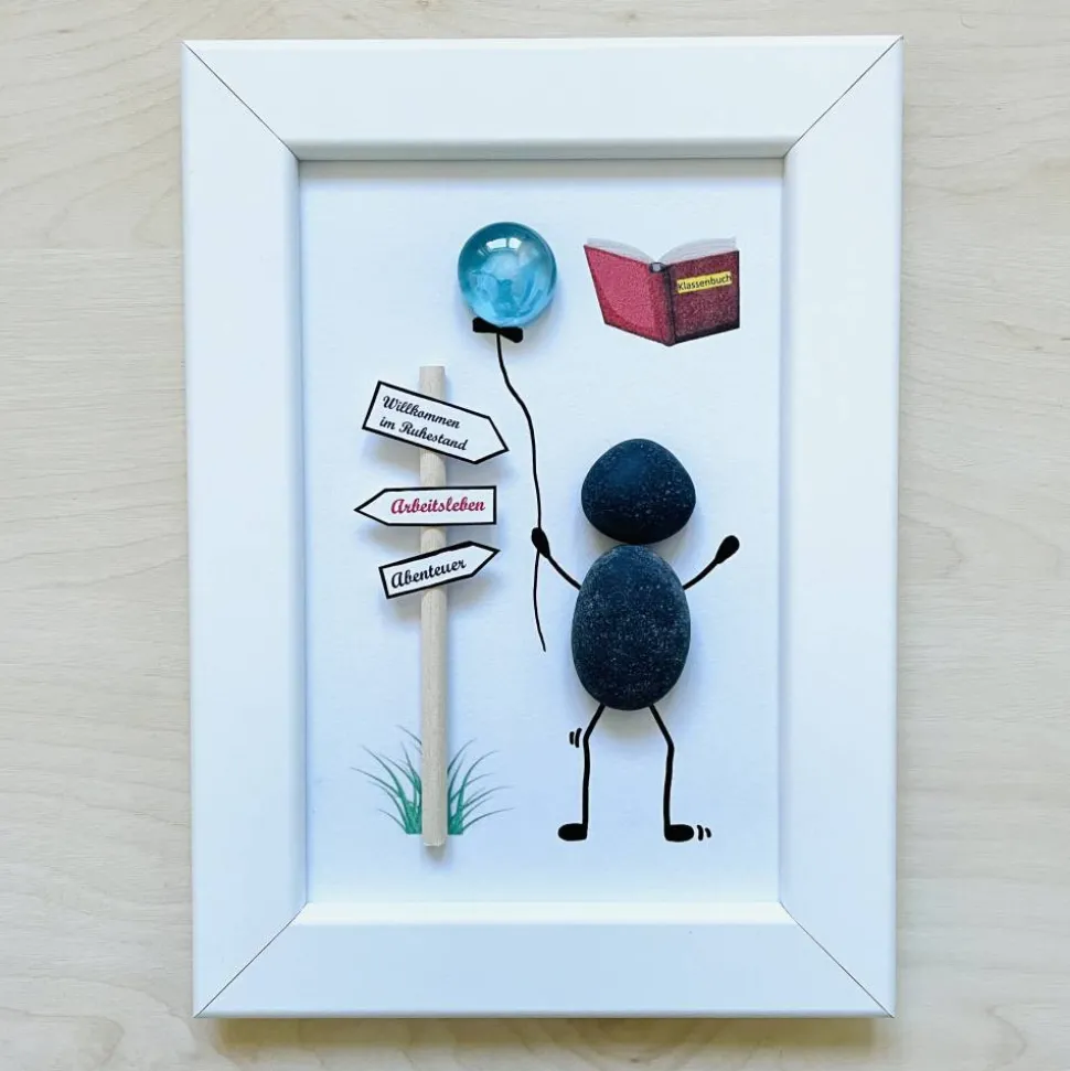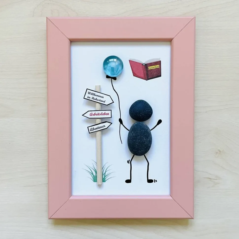 Ein wunderschönes handgefertigtes Steinbild zum Ruhestand – perfekt als persönliches Abschieds- und Dankeschön-Geschenk für Lehrerin, Lehrer, Kollegin oder einen geschätzten Menschen, der in einen neuen Lebensabschnitt startet.