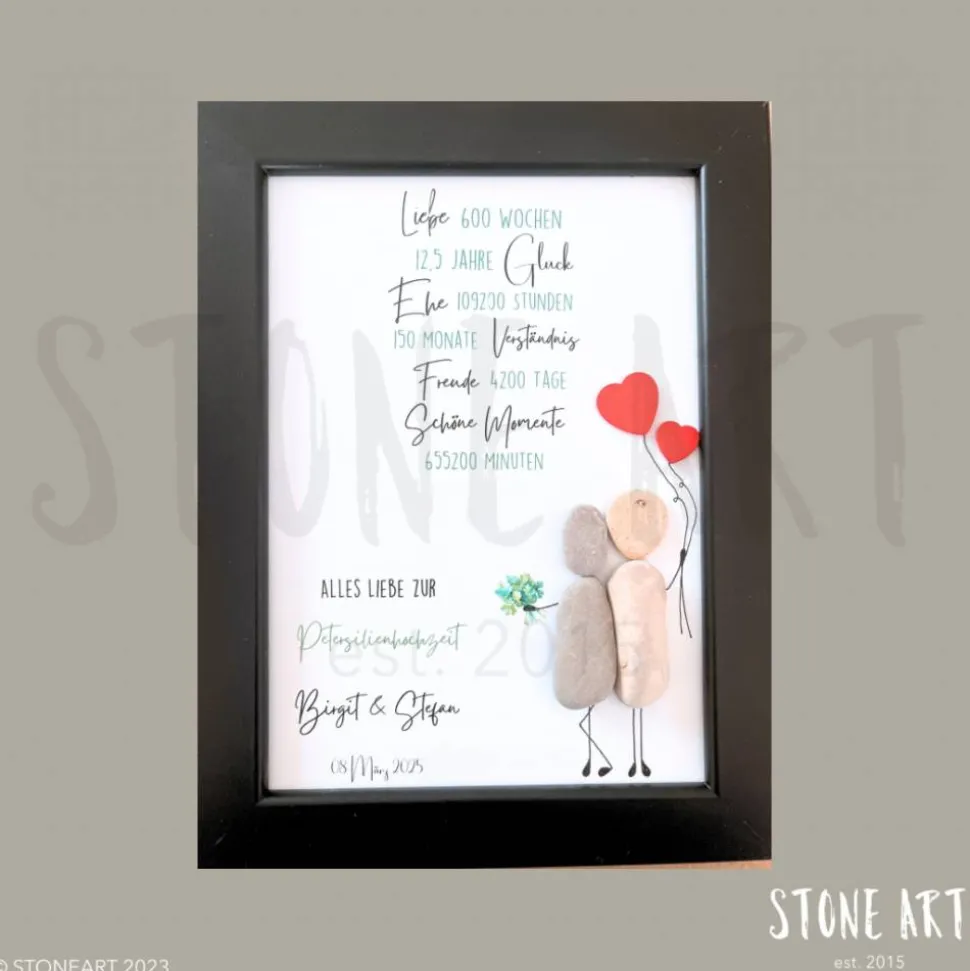 Feiere 12,5 Jahre Liebe und Würze mit einem einzigartigen, handgemachten Steinbild zur Petersilienhochzeit! Dieses Kunstwerk ist das perfekte Geschenk für Paare, Freunde oder Familienmitglieder, die den besonderen Meilenstein der Halbzeit zur Silberhochzeit begehen.