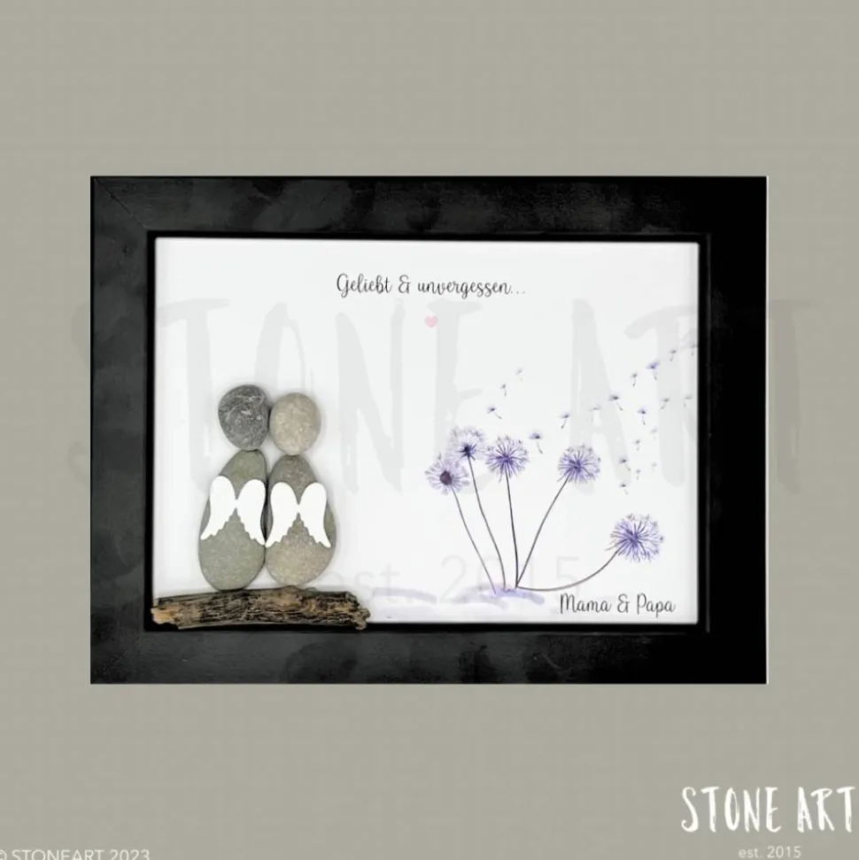 Ein einfühlsames Motiv aus echten Naturkieseln, das Trost spendet und die Erinnerung an einen besonderen Menschen für immer bewahrt. Ein Geschenk, das in wenigen Worten alles sagt, was das Herz fühlt.