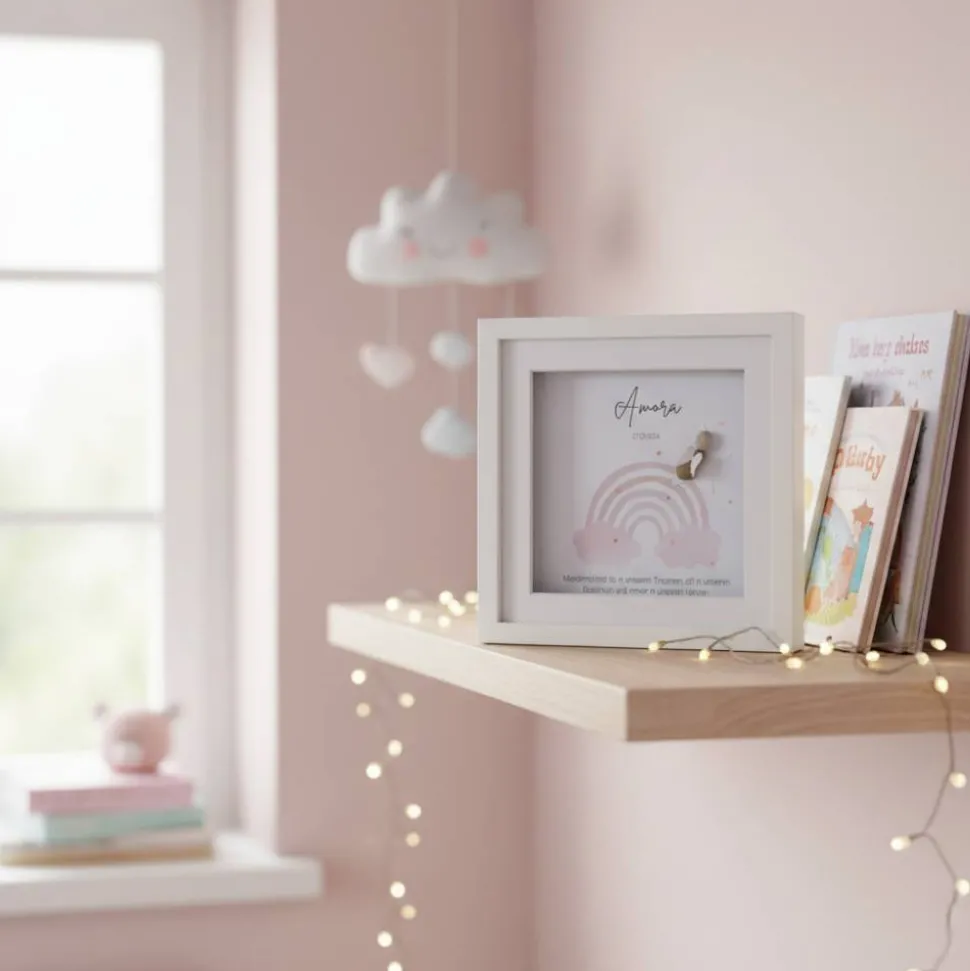 Jedes Bild ist ein Einzelstück und wird individuell nach deiner Bestellung gefertigt. Für die Personalisierung gib bitte den Namen und das Geburts- oder Gedenkdatum deines Sternenkindes an. Trage deine Wünsche direkt im Feld „Personalisierung“ bei der Bestellung ein.