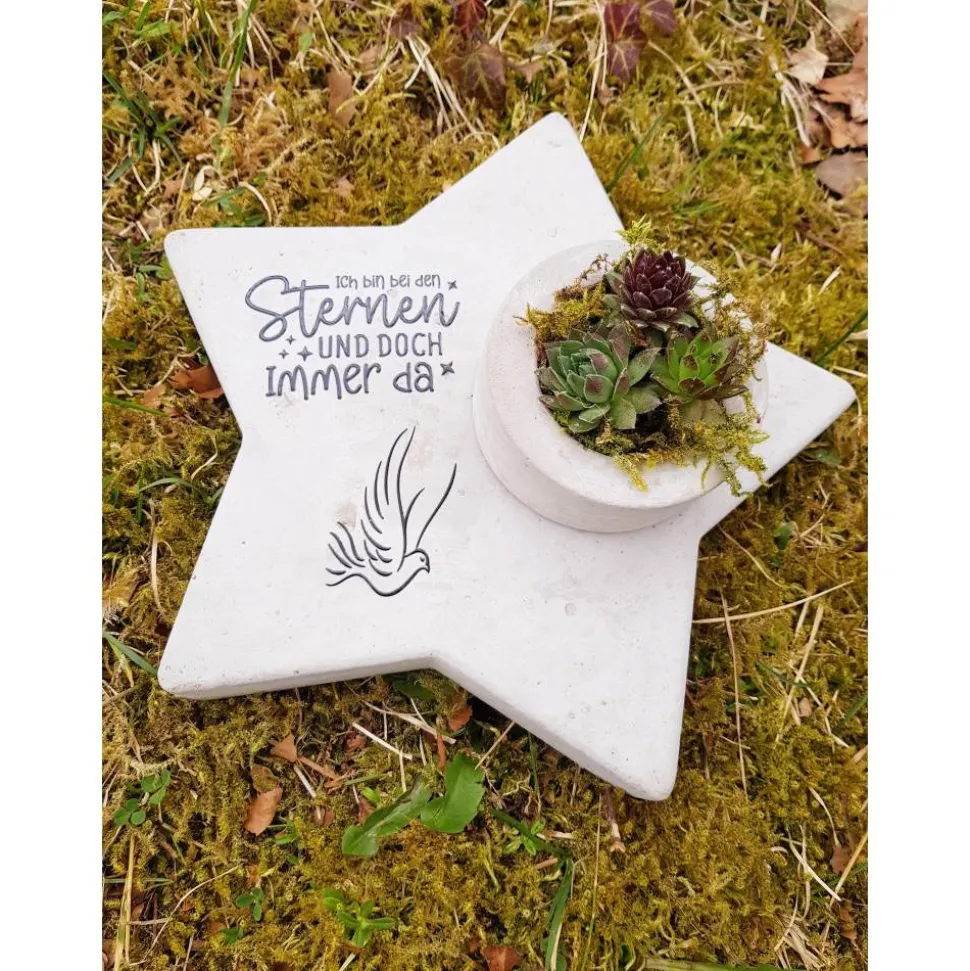 Materialien: Stern aus Gartenbeton, Sempervivum-Arten