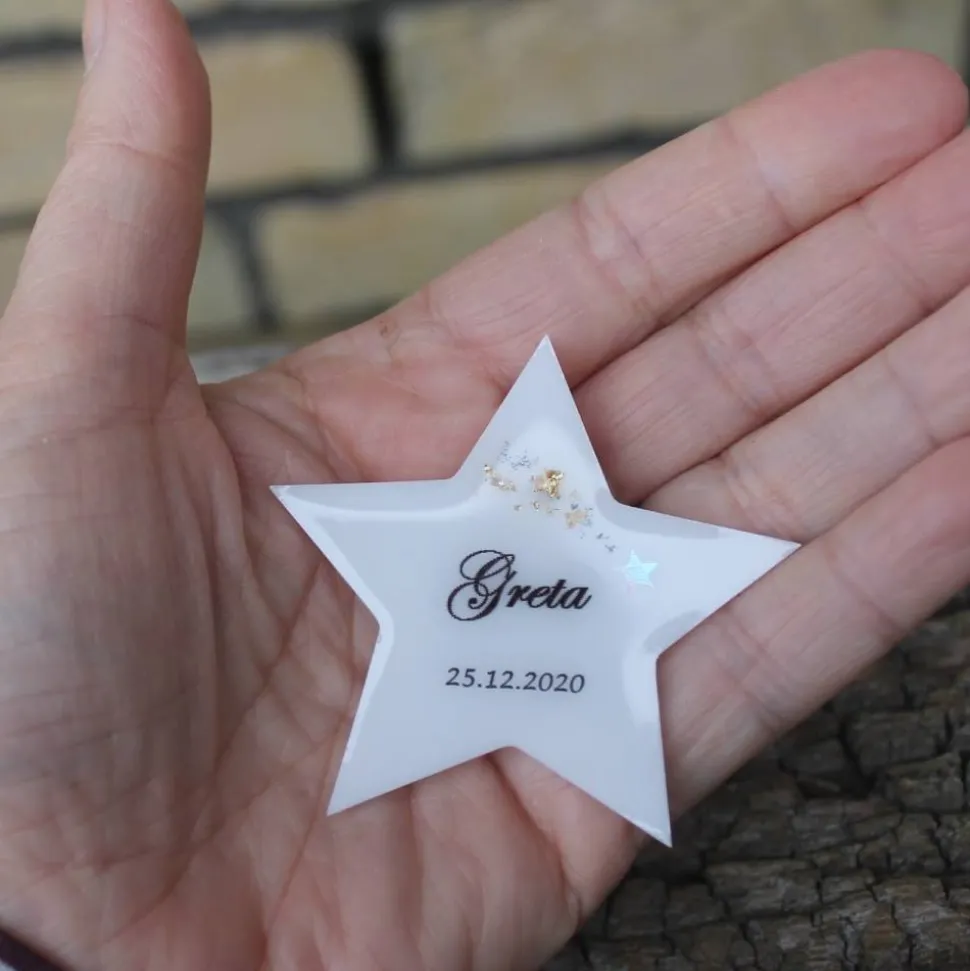 Der Stern ist ca. 6 cm groß und wird eure Gedenkecke schmücken und immer an das Sternchen erinnern.