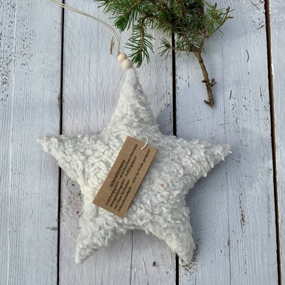 Die Sterne werden mit farblich passendem Band/Holzperlen geliefert,