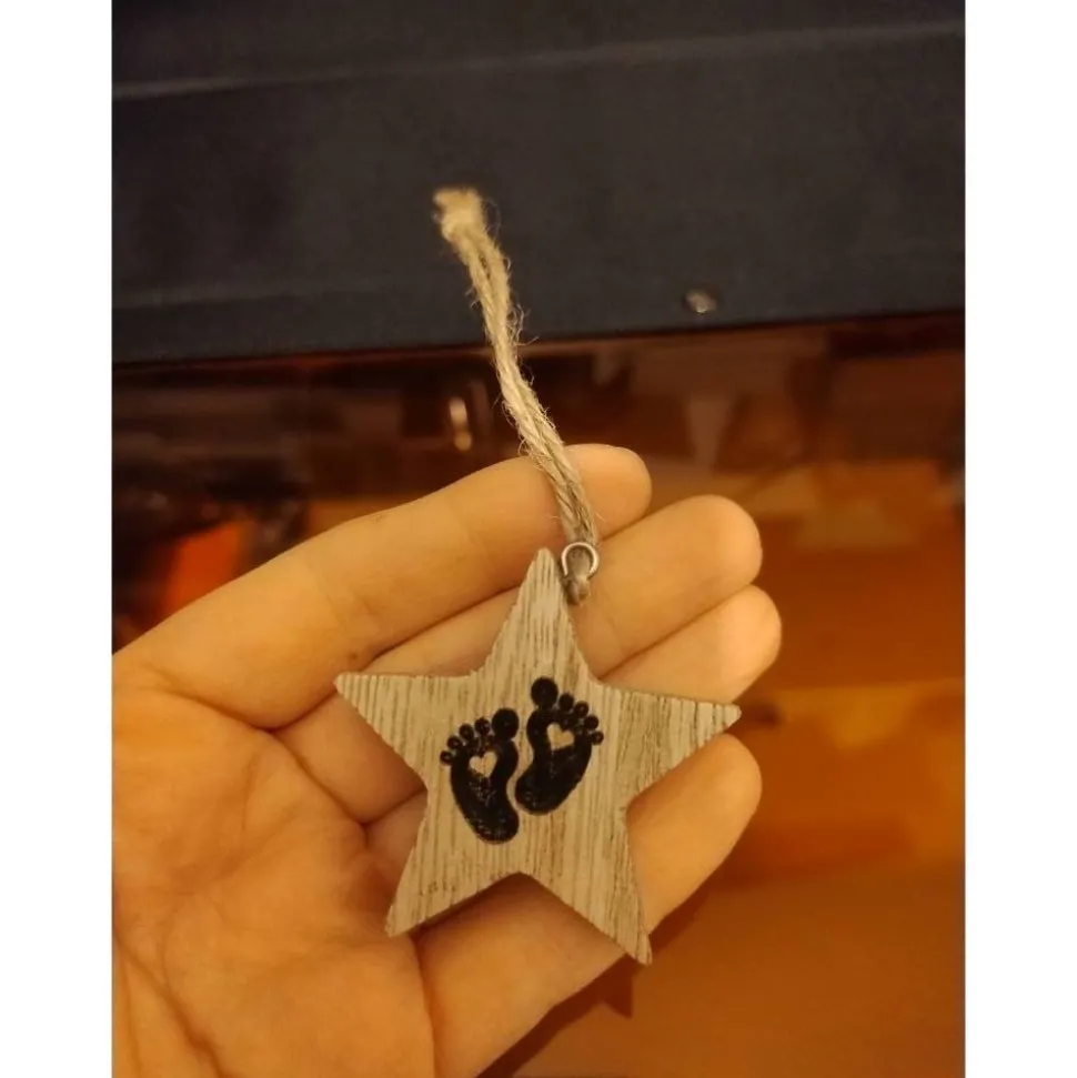 Dieser ist ca 5cm groß und kann mit einen Namen und einen kleinen Motiv (Herz oder Babyfüße) graviert werden.
