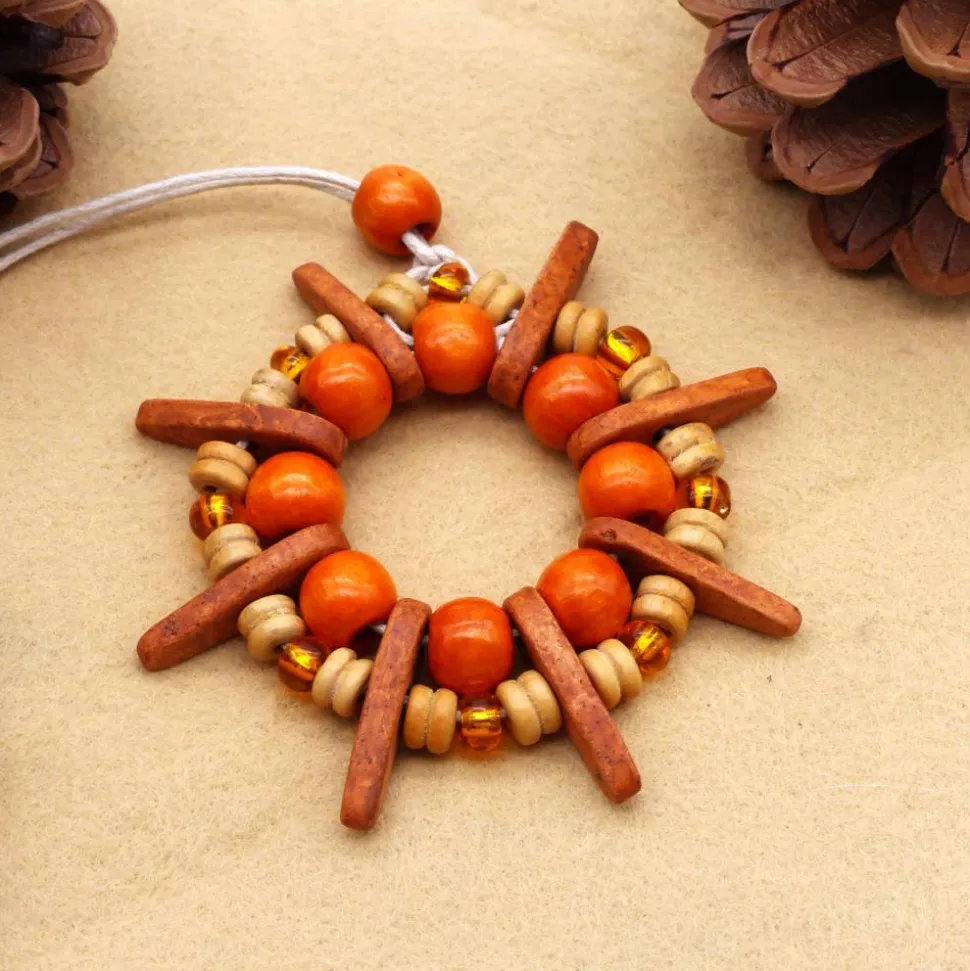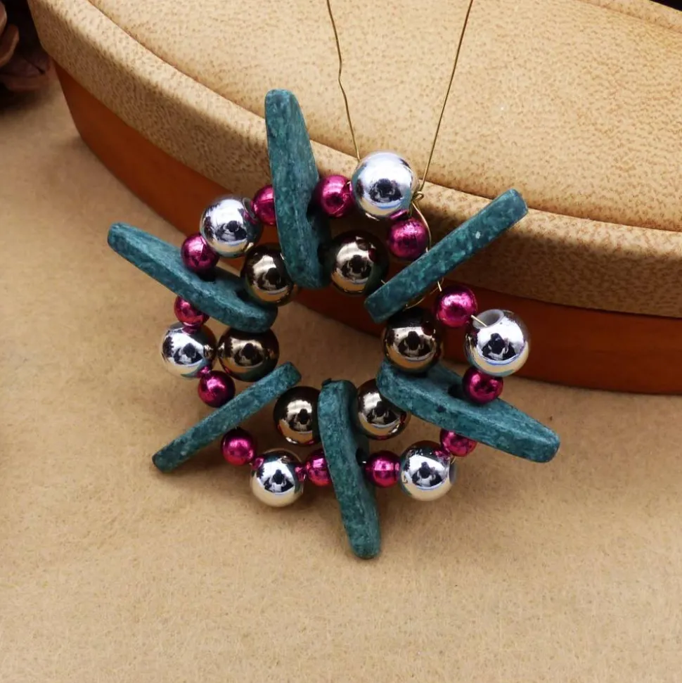 Die Spitzen der Sterne sind griechische Keramikperlen. Die Ringe sind aus Holz und/oder Acrylperlen.