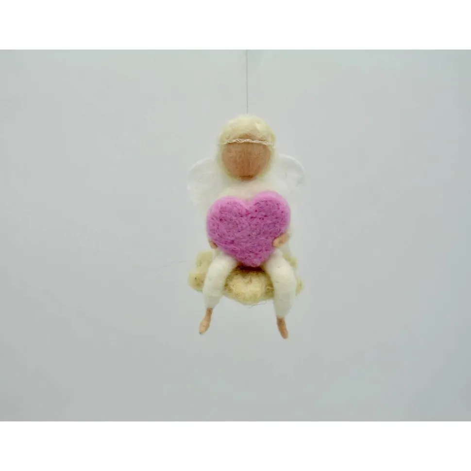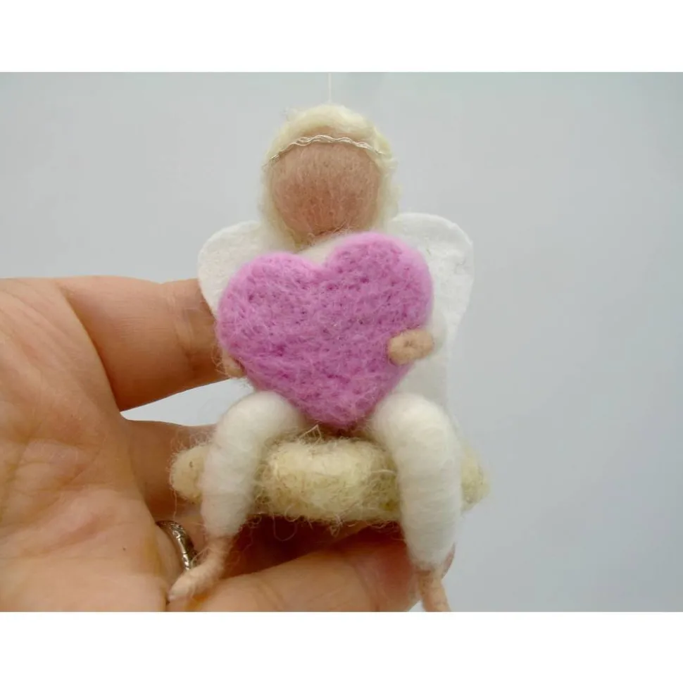 ein supersüßes kleines gefilztes Engelchen auf einem beigen Stern. Das Engelchen hält ein kleines Herz und ist ein wunderbares Geschenk für einen lieben Menschen oder für einen Selbst. Ob zum Geburtstag, Muttertag oder als Schutzengel für besondere Anlässe ist dieses kleine Engelchen sehr geeignet. Das Engelchen ist zwischen 5 und 7 cm groß.