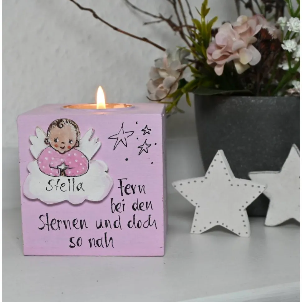 STERNENKINDER sind ganz was Besonderes und werden immer einen Platz im Herzen behalten. Mit diesem liebevoll gestalteten Teelichthalter, handbemalt und mit seperat ausgesägtem Sternenkind auf einer Wolke, erhalten Sie ein individuelles Andenken, dass Ihnen als Sternenkindeltern Trost spenden kann.