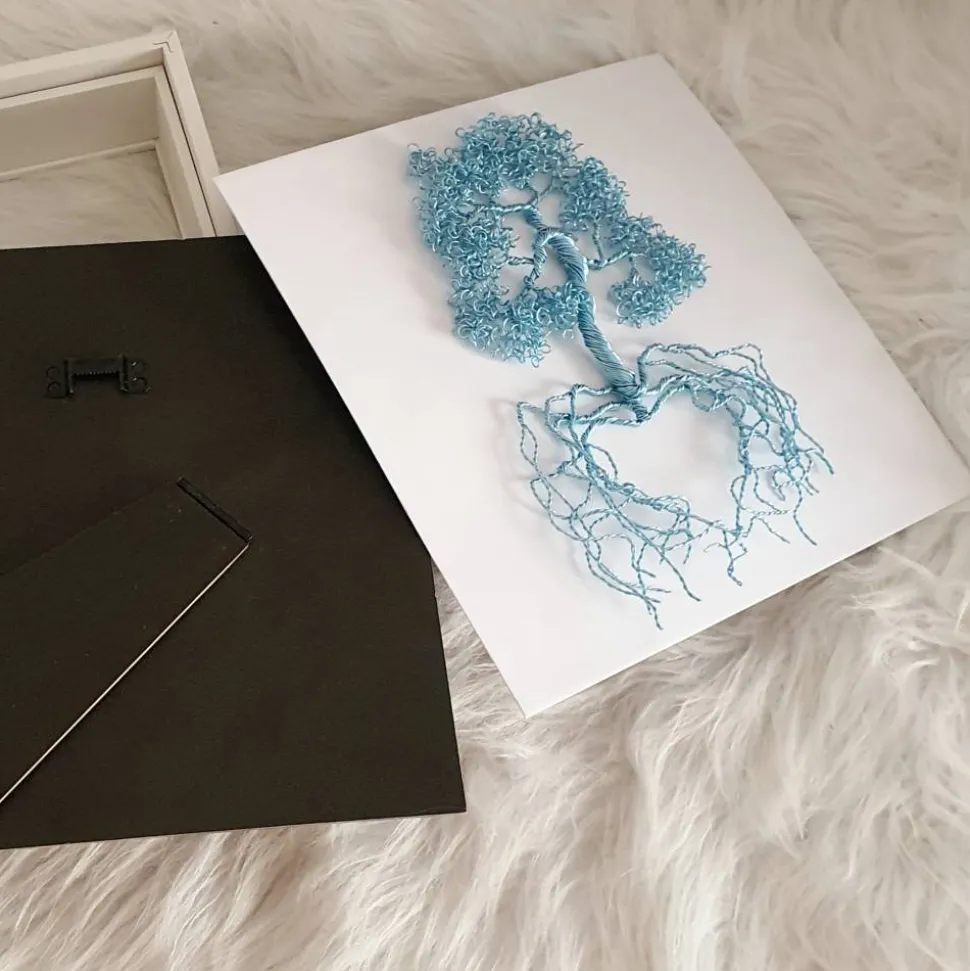 Speziell dafür habe dieses Drahtbaum Design entworfen. Ich verwende für den Drahtbaum rund 36 Meter Aluminiumdraht. Und einen 3D Bilderrahmen. Hier haben Sie die Möglichkeit weitere kleiner Erinnerungen in dem Rahmen zu verwahren.