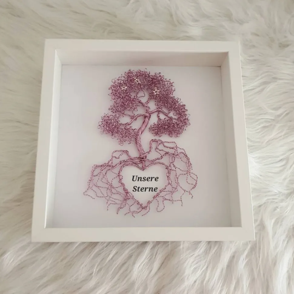 Ein Kinder oder einen anderen geliebten Mensch zu Verlieren ist für jeden eine traurige Erfahrung. Besonders schwer ist es wohl für Eltern die nicht die Gelegenheit hatten schöne Erinnerungen an Ihr Kind zu sammeln. Mit diesem Drahtbaum möchte ich Eltern von Sternenkindern dabei helfen eine schöne Erinnerung an Ihre Sterne zu gestalten.