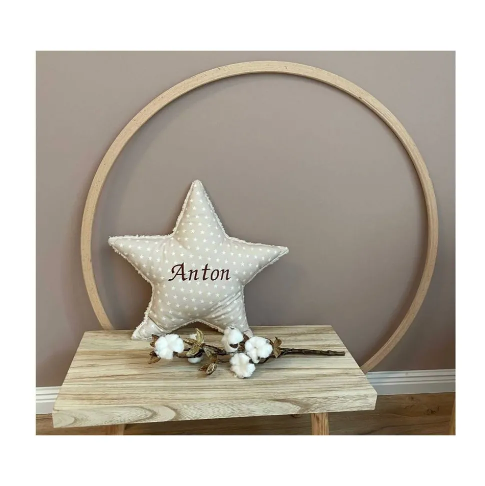 Mit Namen bestickt ist dieses Sternenkissen ein ganz individuelles Geschenk zu Weihnachten, Geburt oder Taufe.