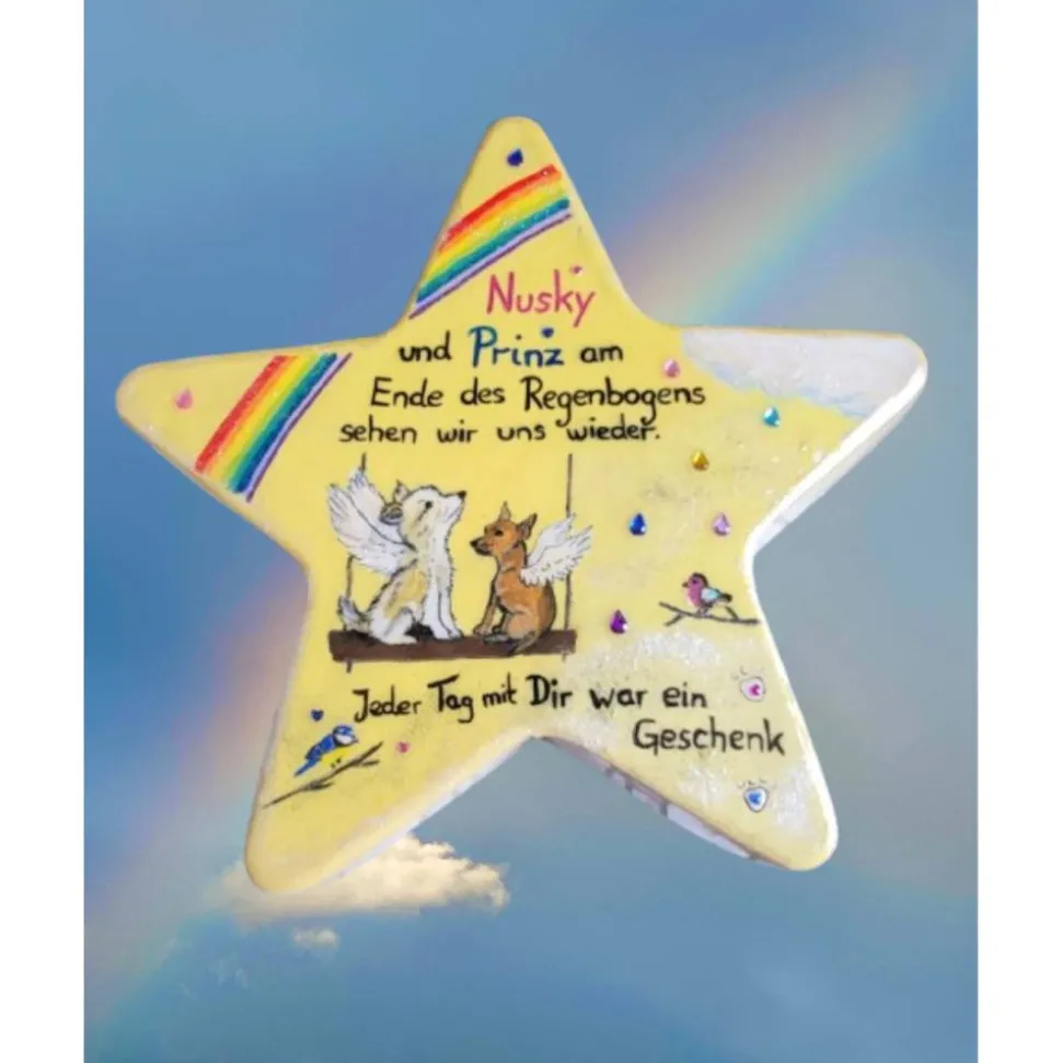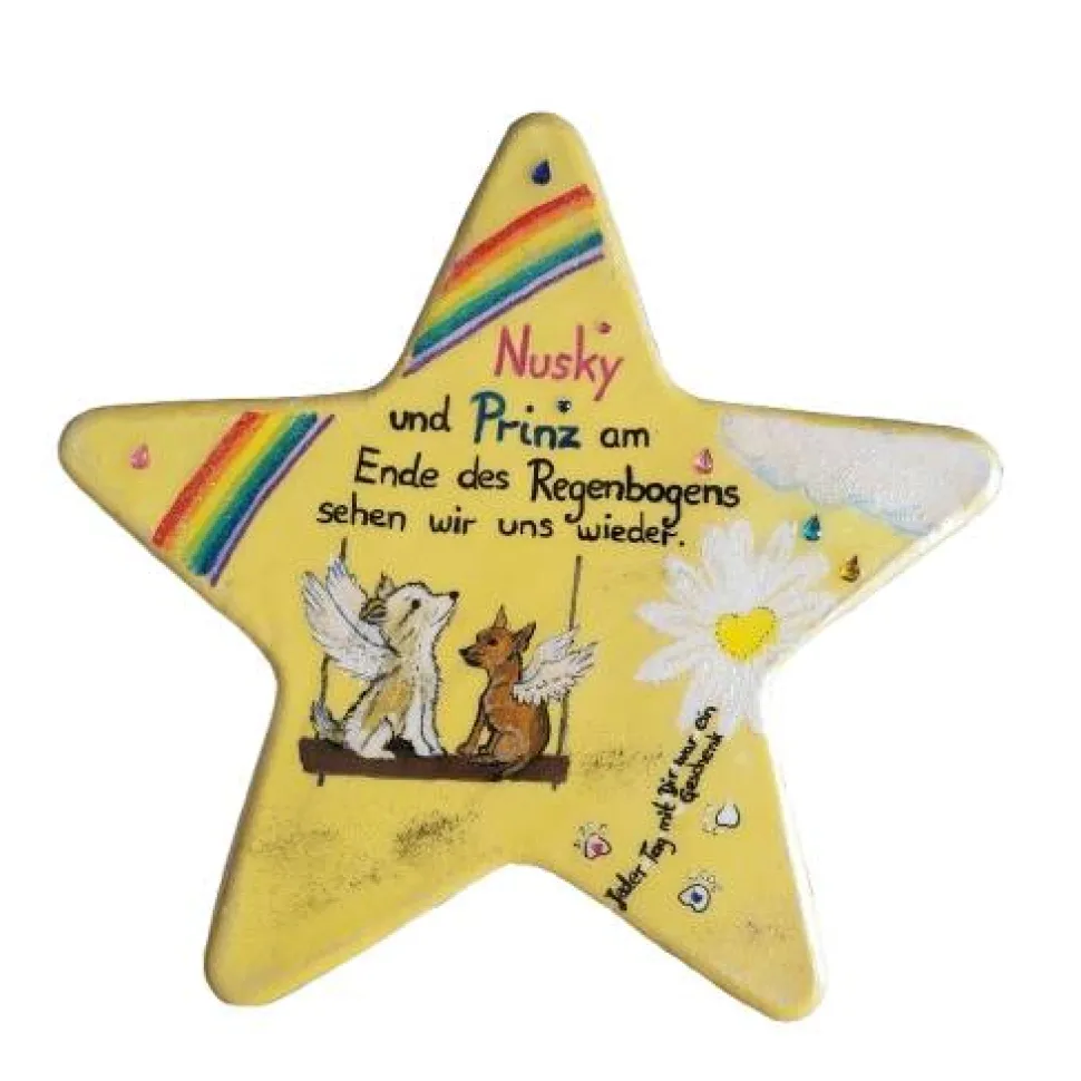 Jeder Stern wird mit Sorgfalt und Einfühlungsvermögen gefertigt ✨. Auf Wunsch sind Spezialanfertigungen möglich – so entsteht ein einzigartiges Erinnerungsstück, das die besondere Verbindung zwischen dir und deinem Tier würdevoll bewahrt ????.