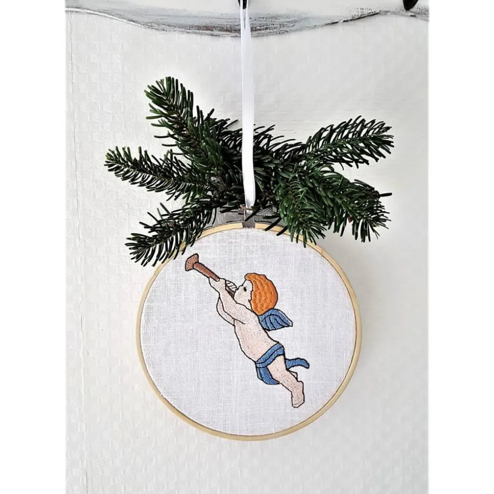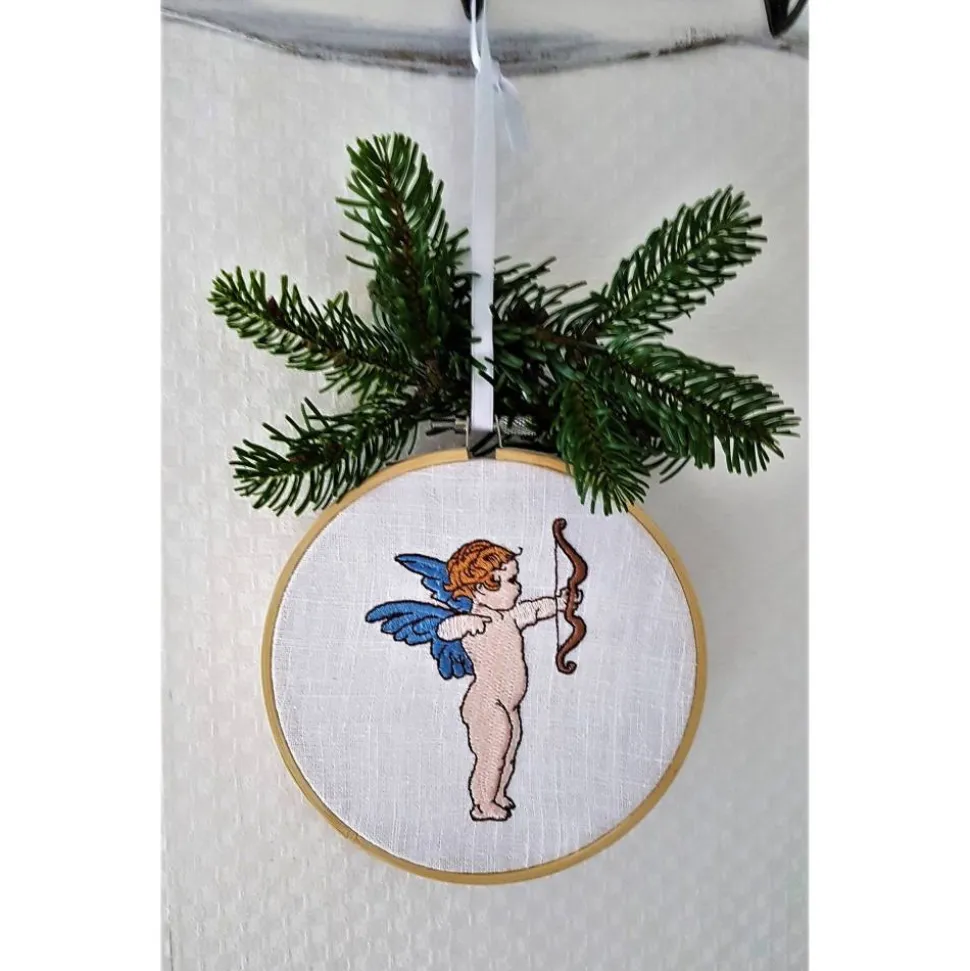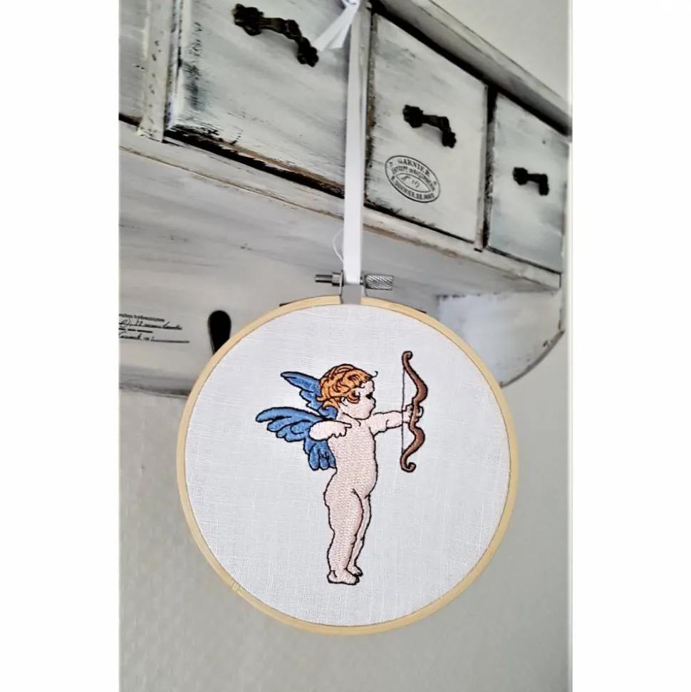 Verleihe deinem Zuhause eine besondere Note mit diesem liebevoll handgefertigten Stickbild. Der süße Engel mit Bogen oder Flöte ist detailreich auf hochwertigem Leinen gestickt und macht das Bild zu einer einzigartigen Wanddekoration.