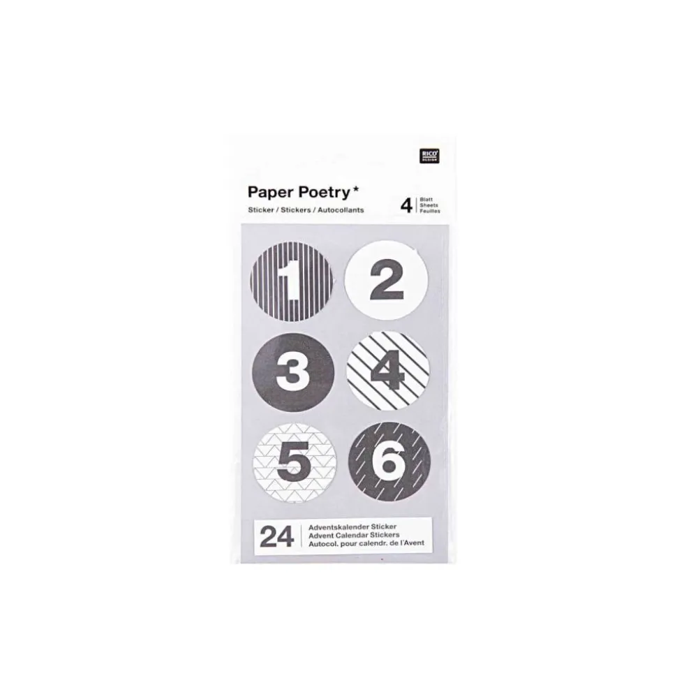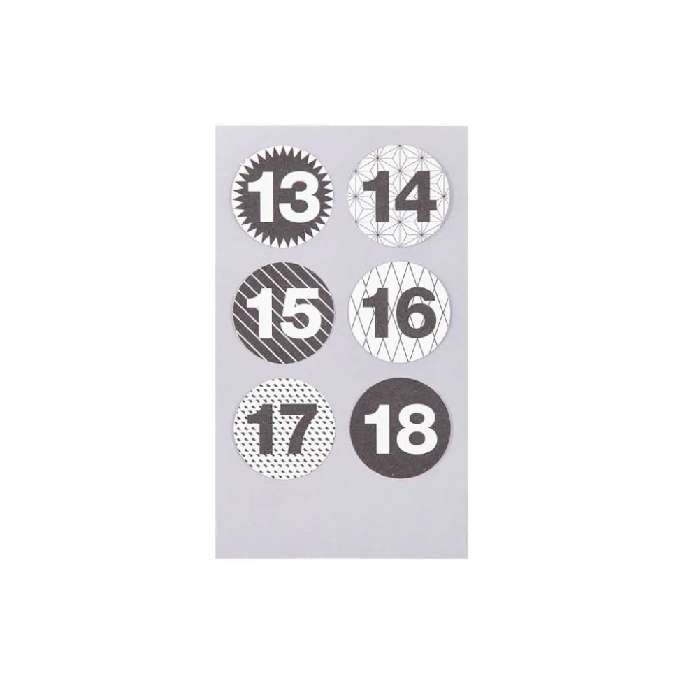 Die runden Klebesticker können direkt auf eine Geschenkverpackung oder Papiertüte geklebt werden. Die Zahlensticker sind in edlem schwarz und weiß gestaltet.