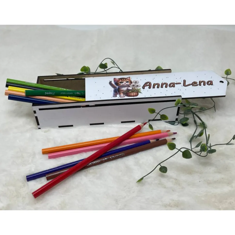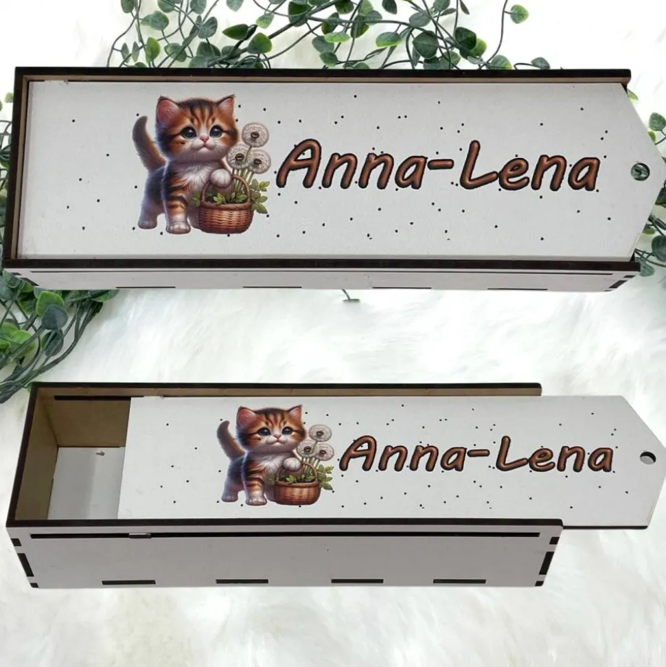 Stiftebox aus Holz personalisiert | Geschenk Einschulung| Federmäppchen Stifte Etui | Stifthalter Katze