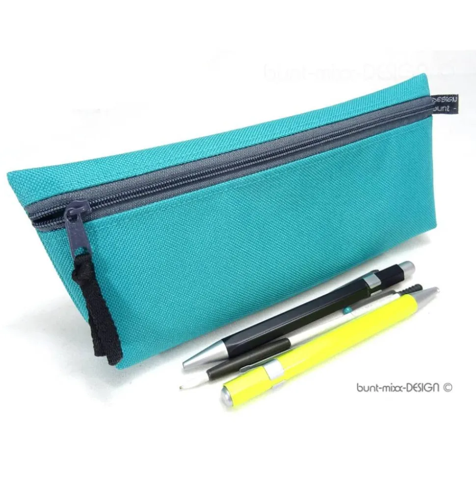 Das Täschchen in petrol hat den Zipper in grau, bei allen andere ist der Reißverschluß schwarz.