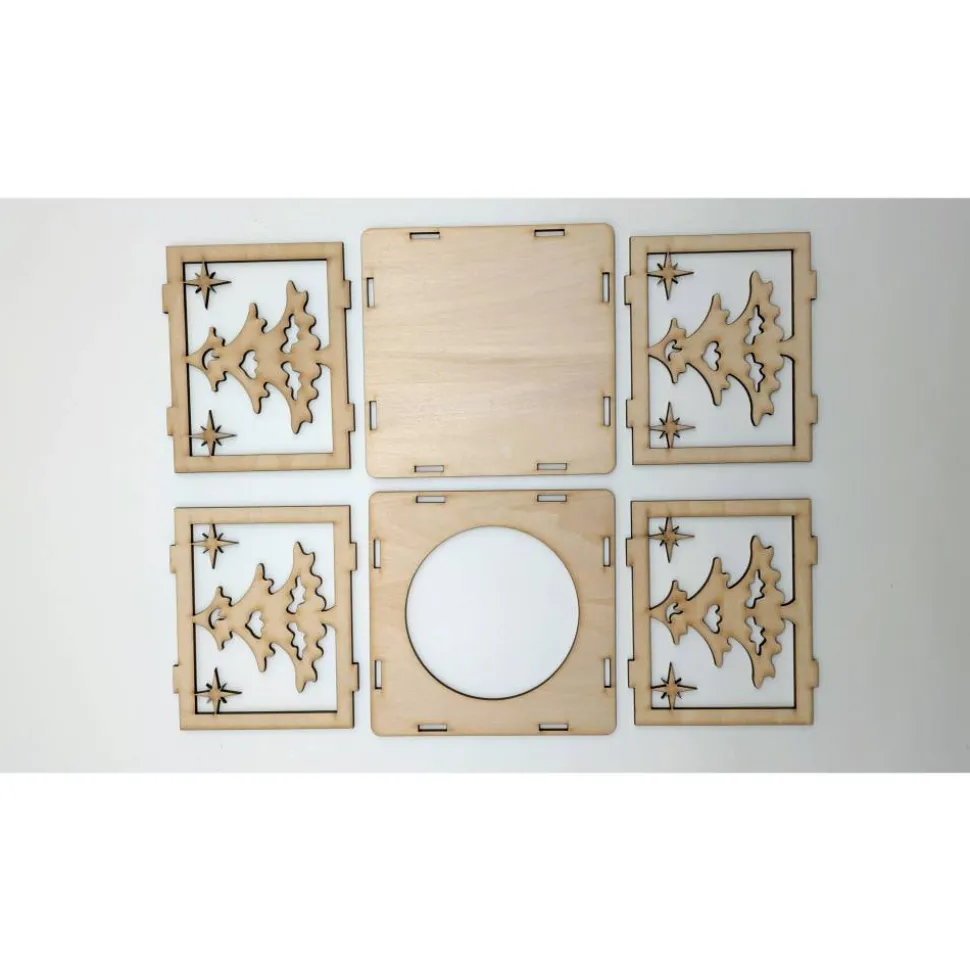 Stimmungsvolle Weihnachtsbeleuchtung für dein Zuhause: Entdecke den Teelicht-Würfel aus natürlichem 3mm Balsa-Holz – ein einzigartiger Laser-Cut-Bausatz, der rustikalen Charme mit modernem, filigranem Design vereint. Sein warmes Licht schafft eine gemütliche Atmosphäre in deiner Winter- und Weihnachtszeit.