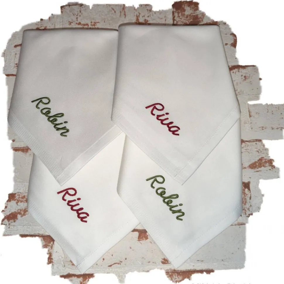 Lieferumfang: Stoffservietten mit Wunschnamen.