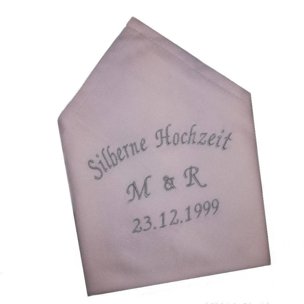 Garnfarbe für Schriftzug Silberne Hochzeit, Initialen und Datum ist gleich. Garnfarbe ist grau/silberne.