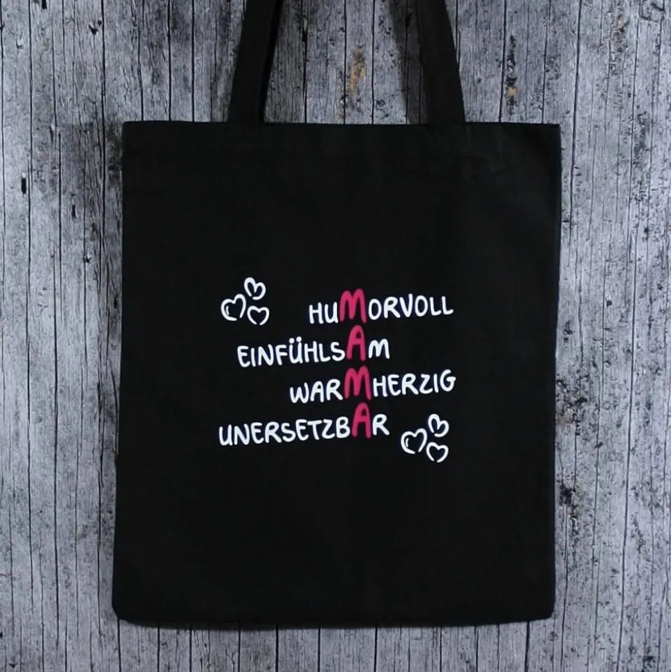 schwarze Baumwolltasche MAMA2 mit langen Henkeln,