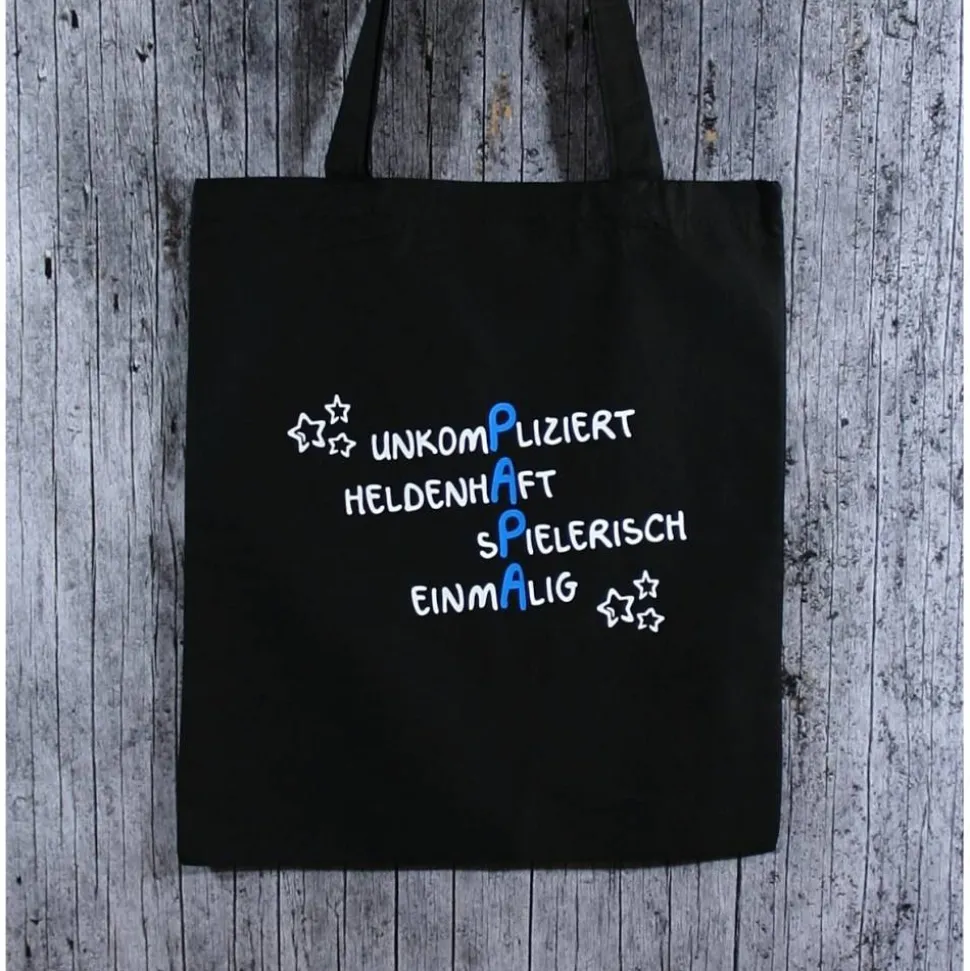 schwarze Baumwolltasche PAPA2 mit langen Henkeln,