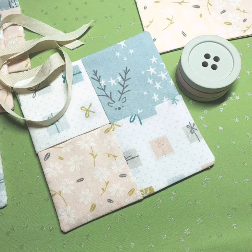 Mit einer Größe von etwa 13 x 13 cm ist der Untersetzer handlich, vielseitig und wiederverwendbar. Auf den Fotos siehst du, wie drei knopfförmige Nähgewichte mühelos darin verschwinden. Zusammengefaltet eignet sich der Stoffuntersetzer wunderbar als kreative Verpackung für Geld oder Gutscheine – und danach wird er einfach zum dekorativen Alltagshelfer.