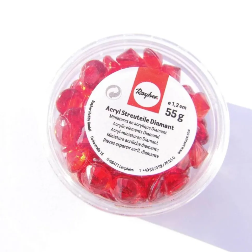Die Streuteile stehen in 2 Farben zur Verfügung. Verpackt sind die Dekosteine in einer runden Dose zu 55 g. Die Acrylsteinchen sind ca. 1,2 cm groß. Mit den Dekodiamanten erhält man eine schillernde Tischdeko.