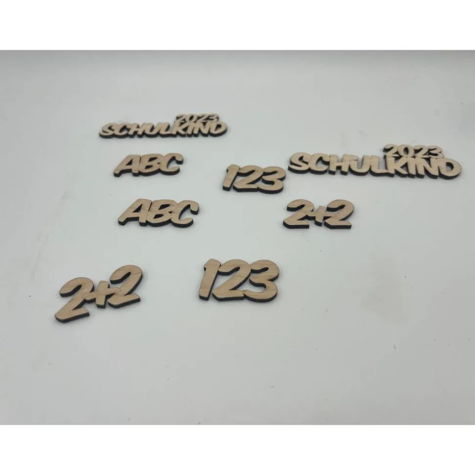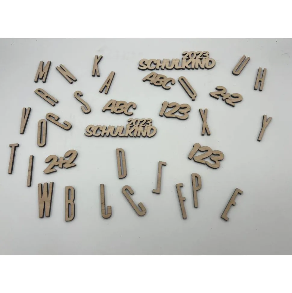 Insgesamt 32 Teile, 4×123, 4xABC, 2xSchultüte 123, 2xSchultüte ABC, 10x Zahlen 10xBuchstaben
