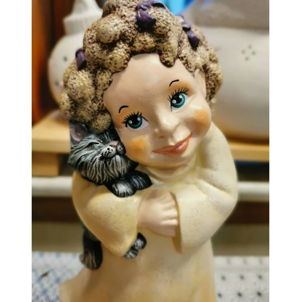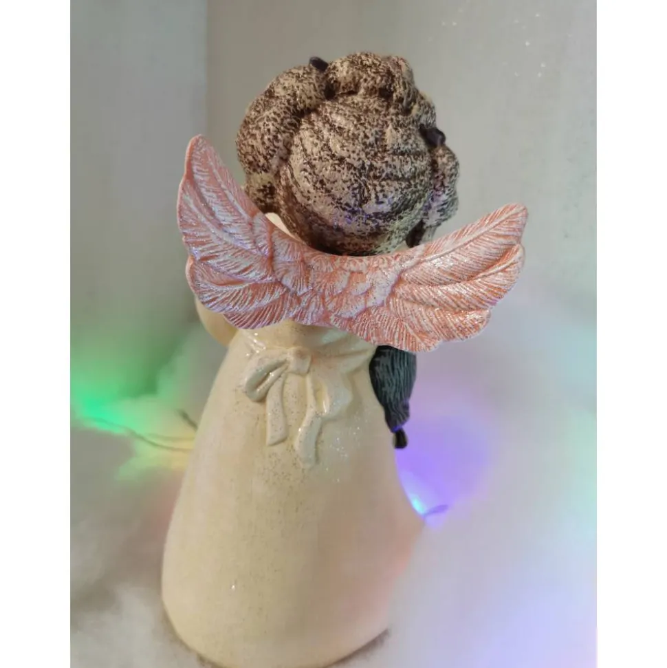 Der Engel ist aus Keramik, ca 22x14cm handgemalt und wetterfest versiegelt, kann also draussen stehen, sollte aber vor Frost geschützt werden.