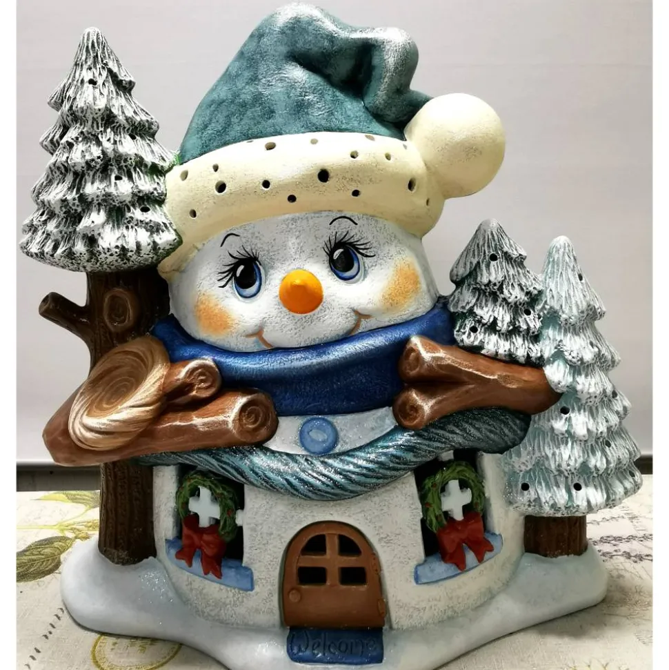 Süsser Schneemann aus Keramik zum Beleuchten