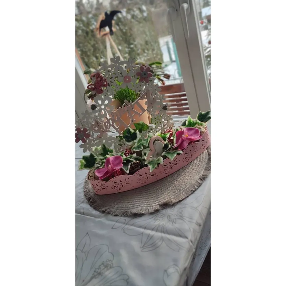 Diese traumhaft schöne Dekoration ist für den Tisch oder Fensterbank sowie Kommode geeignet….