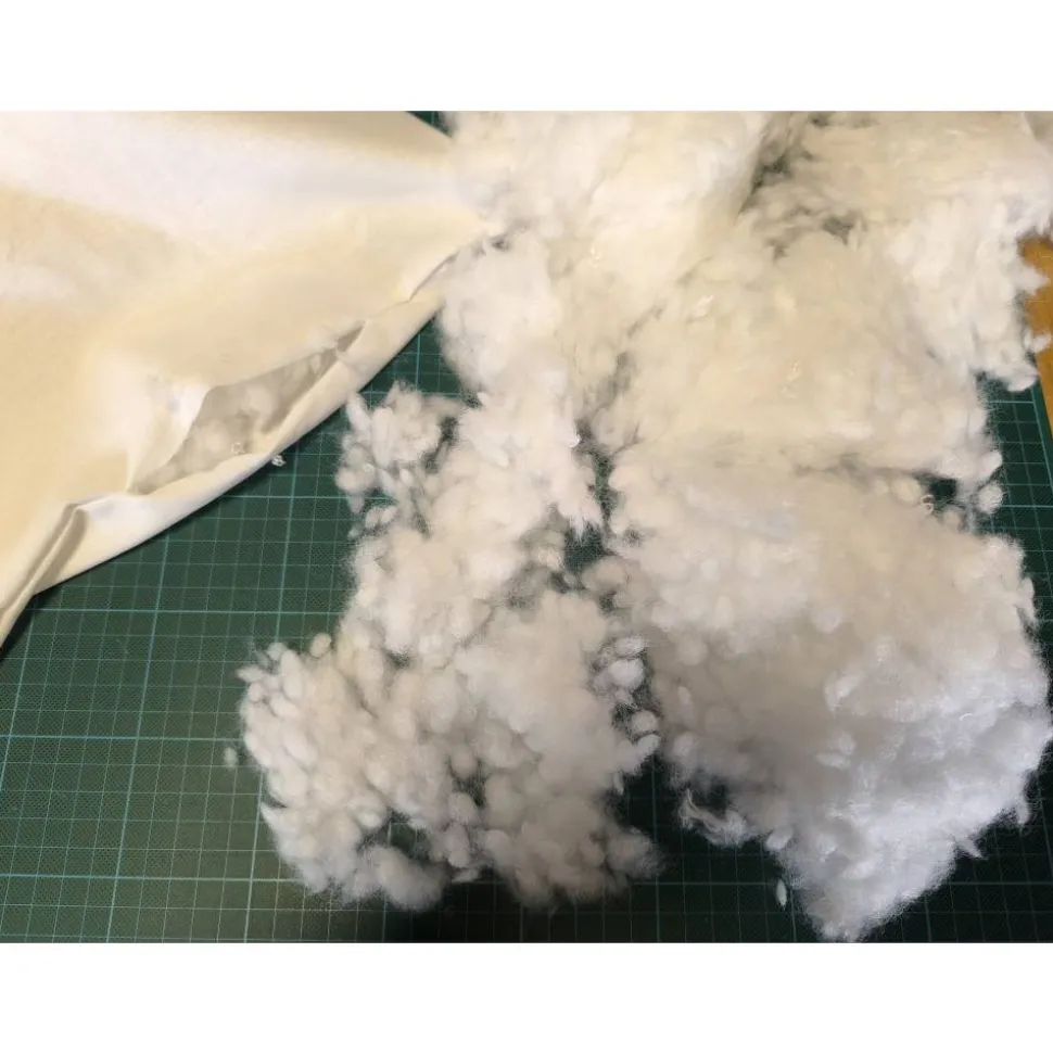 Komplettkissen – Vorderseite 100 % Baumwolle, Rückseite aus Teddystoff natur 100 % Baumwolle, Füllung 100 % Polyesterwatte/Kügelchen.