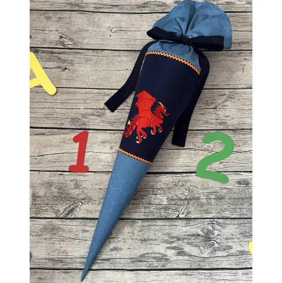 Die Schultüte ist 70cm groß, Plus der Stoff zum verschließen und genäht aus 98% Baumwolle 2%Elastan.