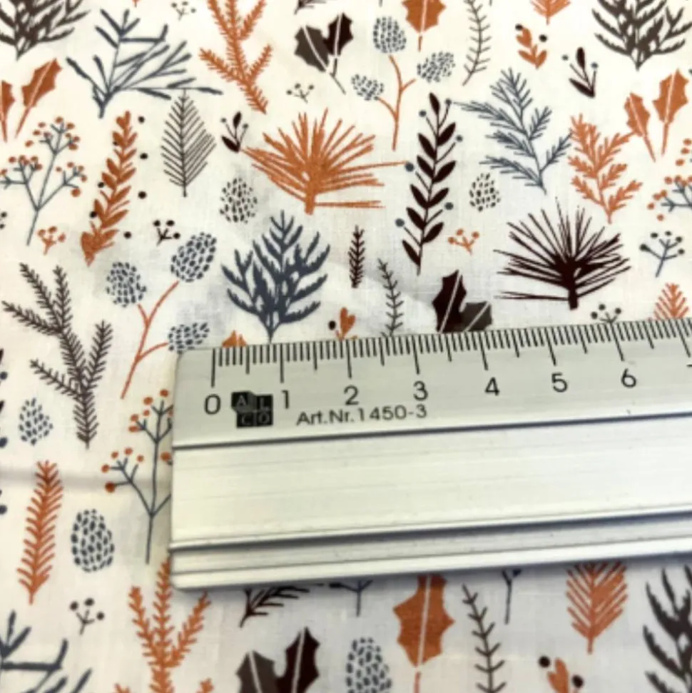 Mit Ästen und Zweigen wird es weihnachtlich. Der hochwertige Baumwollstoff besteht zu 100 % aus Naturfasern und überzeugt durch seine Atmungsaktivität, Strapazierfähigkeit und Pflegeleichtigkeit. Ideal geeignet für Nähprojekte wie Adventsbeutelchen, Kleidung, Kissenbezüge, Vorhänge, Accessoires oder kreative DIY-Ideen. Durch seine hautfreundlichen Eigenschaften ist er besonders beliebt für Baby- und Kindertextilien.