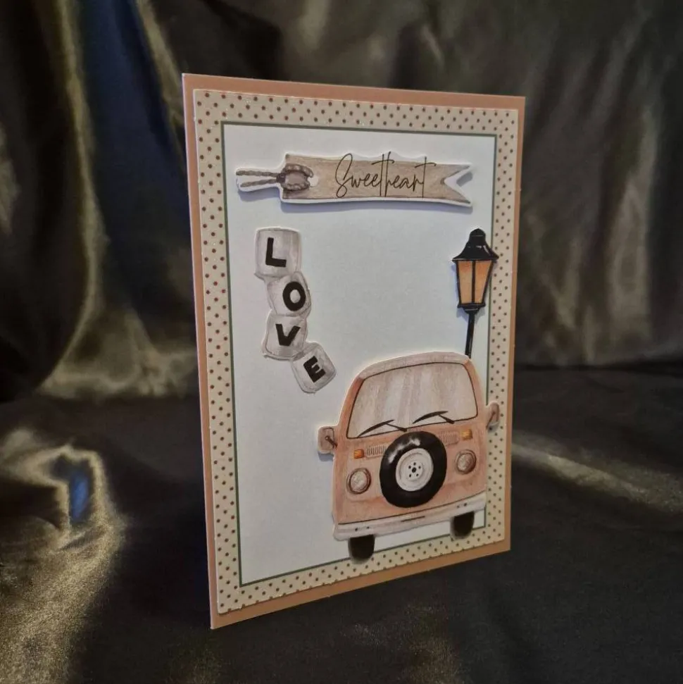Verleihe deinem besonderen Tag eine persönliche Note mit unserer handgefertigten Hochzeitskarte mit charmanten Busmotiv und dem Spruch ‚Sweetheart‘.
