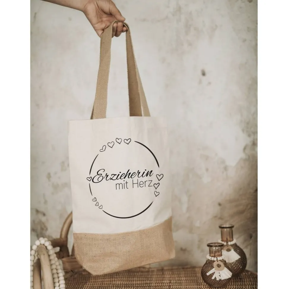 Durch das hübsche Design ist die Jutetasche ein echter Hingucker.