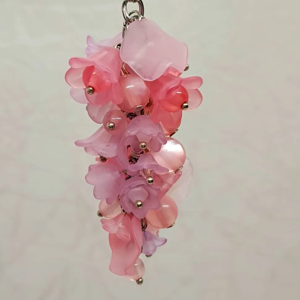 Der Taschenbaumler Blütentraube rosa ist ein einzigartiges Accessoire, das mit einem liebevollen Materialmix aus Acrylblüten, schimmernden Acrylperlen und funkelnden Glasbiconen in verschiedenen Rosatönen überzeugt. Diese werden an eine Kette montiert, wodurch der Taschenbaumler stets beweglich bleibt und immer wieder unterschiedlich aussieht – je nachdem, wie die Blüten und Perlen gerade fallen.