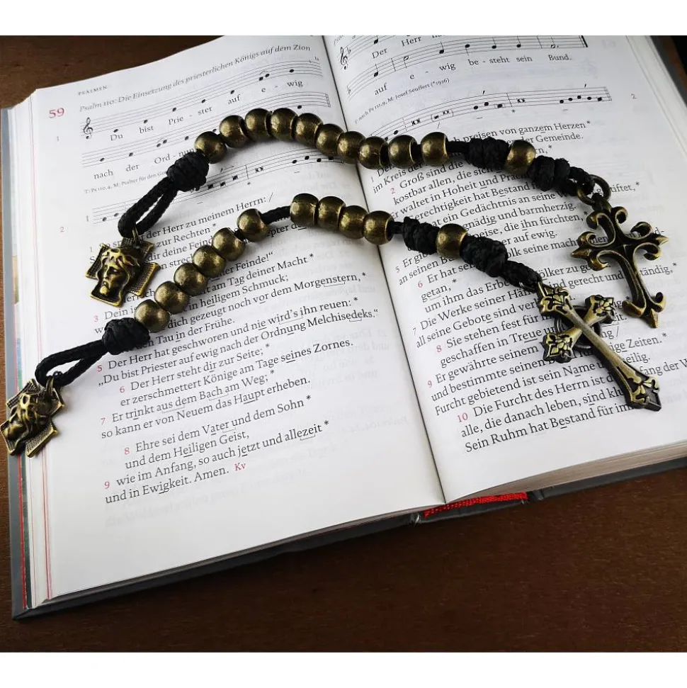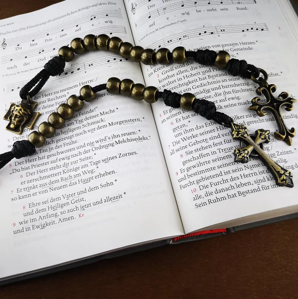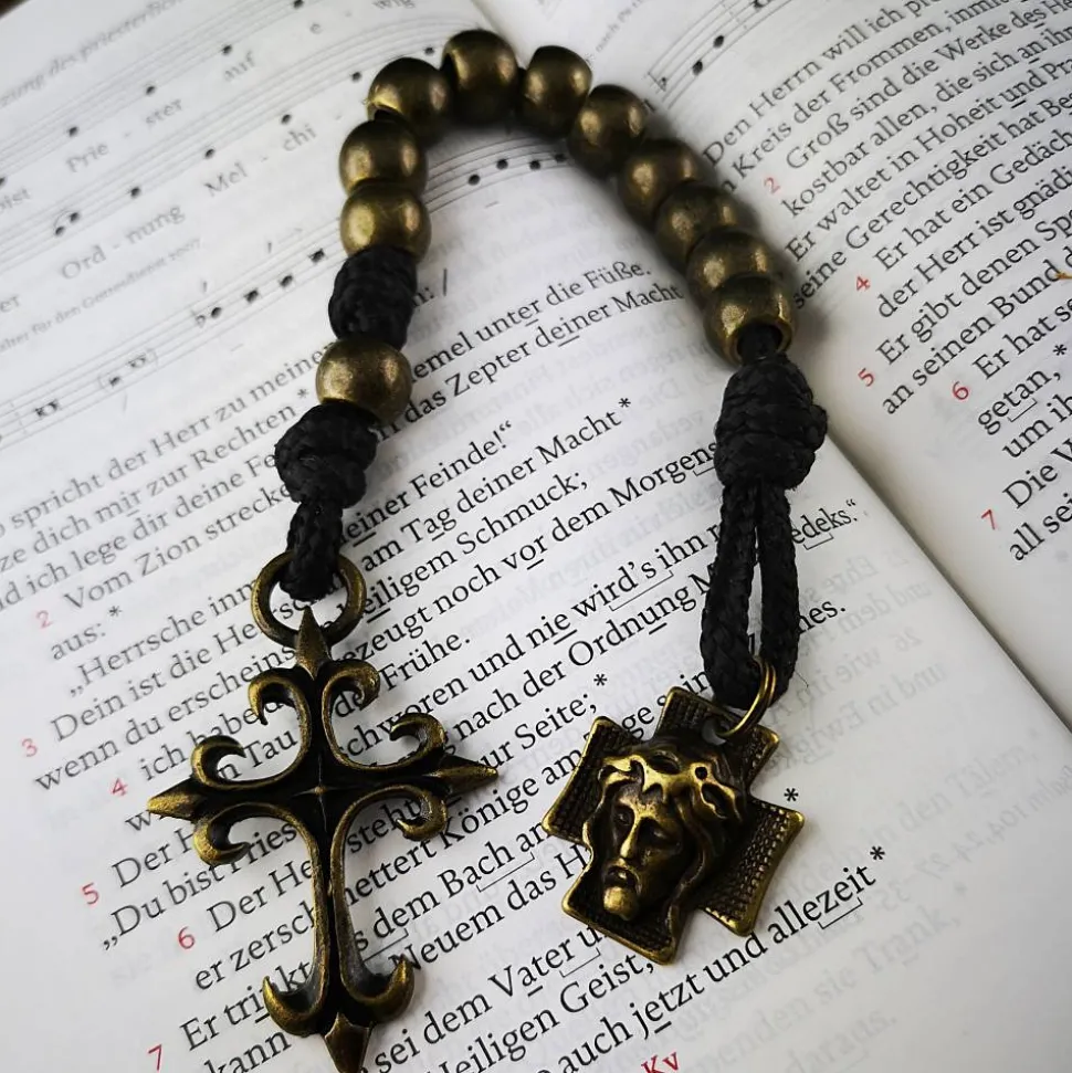 Der katholische Taschenrosenkranz, auch bekannt als Fingerrosenkranz, ist ein handgeknüpfter Rosenkranz mit nur 10 Perlen.
