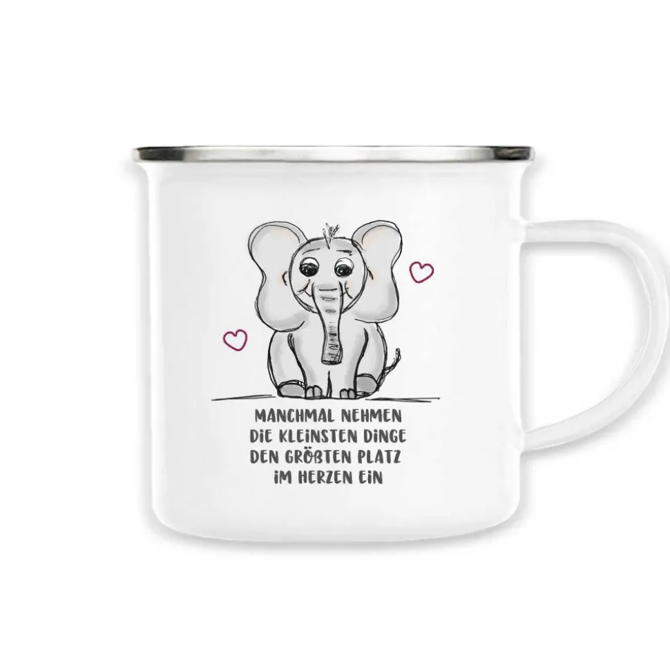 Diese Tasse kommt mit einer niedlichen Babyelefant Zeichnung un einem Spruch der entweder so genommen werden kann, oder gerne personalisiert wird